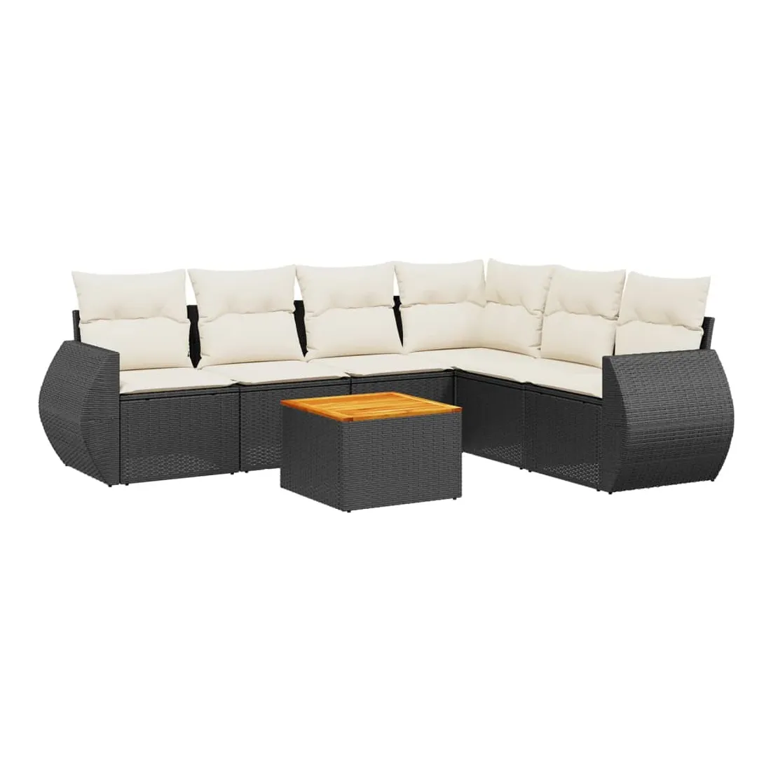 Salon de jardin 7 pcs avec coussins noir résine tressée