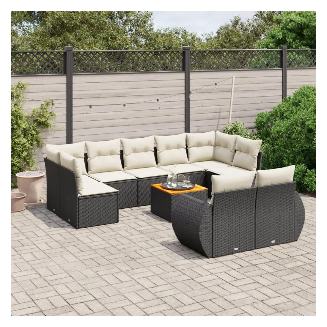 Salon de jardin 10 pcs avec coussins noir résine tressée