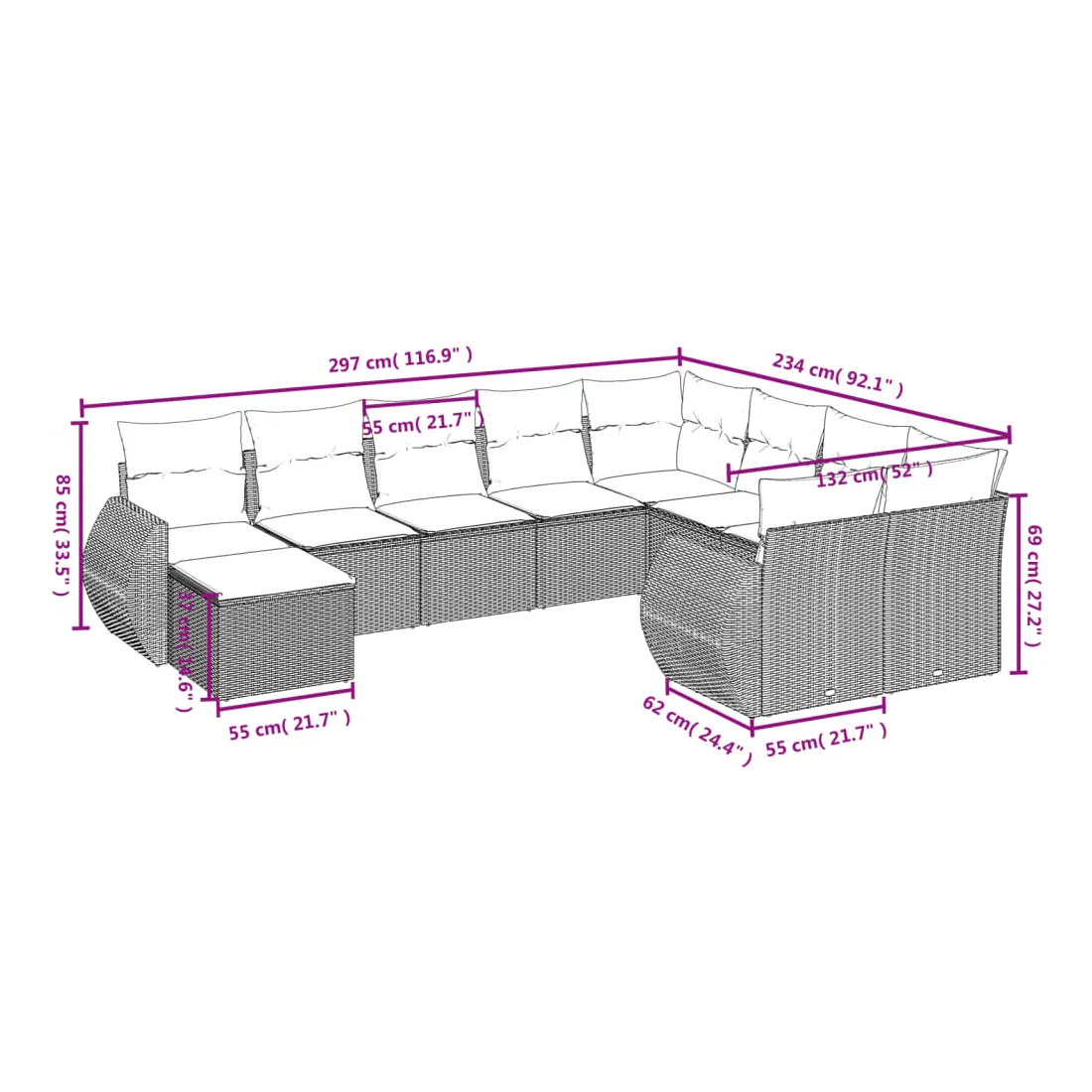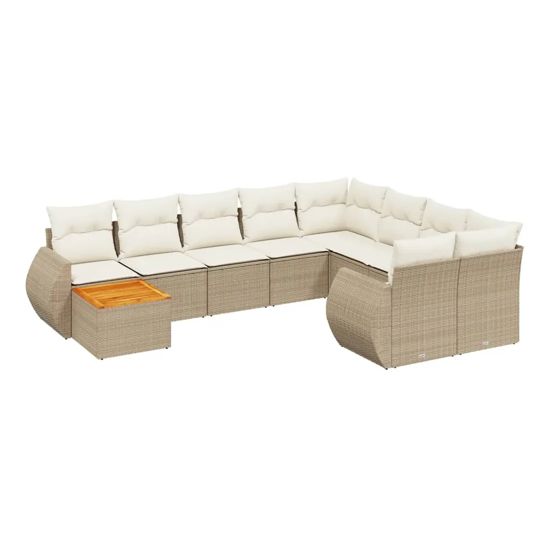 Salon de jardin avec coussins 10 pcs beige résine tressée