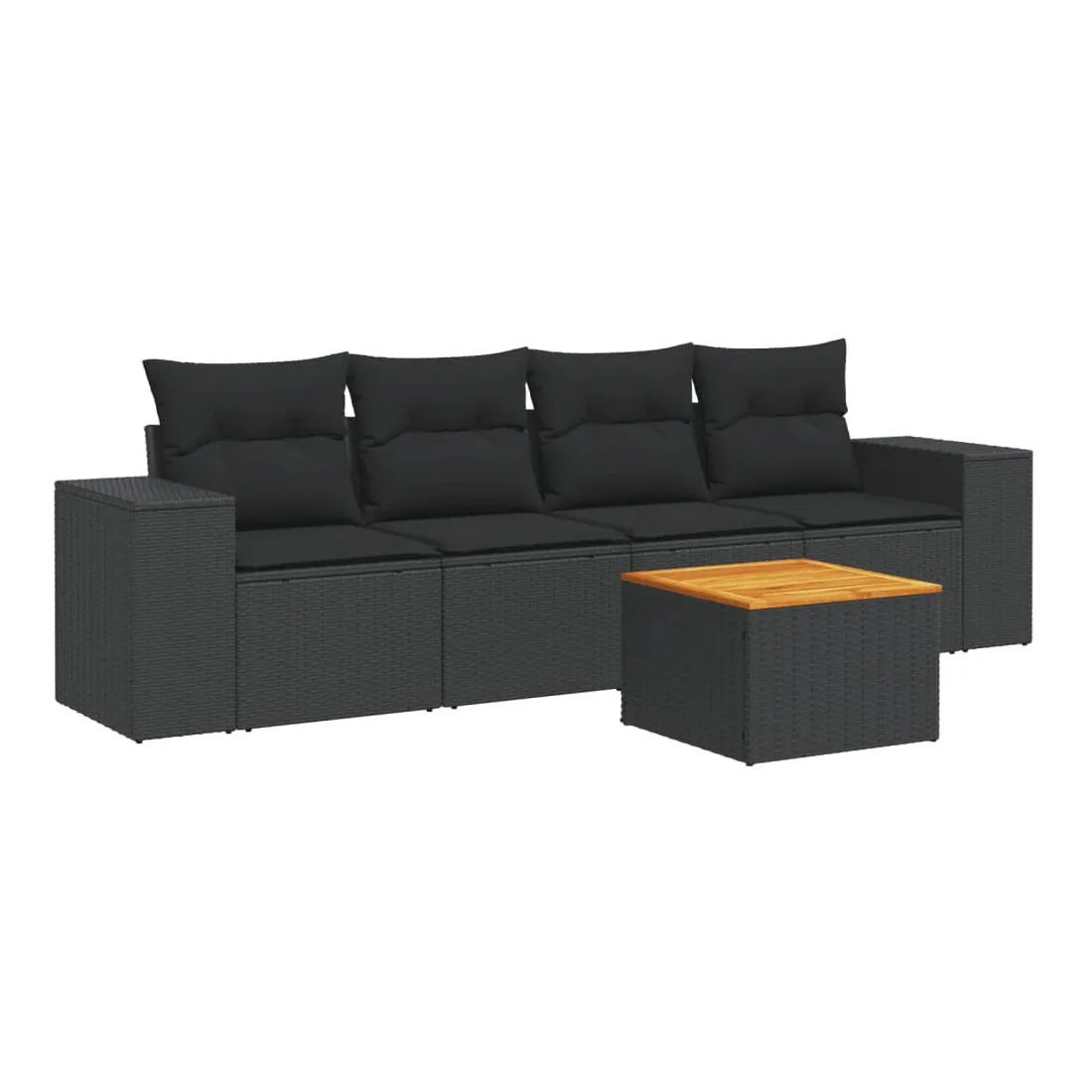 Cet ensemble de canapés de jardin est le complément parfait de votre arrière-cour, terrasse ou patio, offrant un espace confortable et accueillant pour discuter avec la famille et les amis ou simplement se détendre et profiter de l'extérieur. Matériau durable : la résine tressée, également connue sous le nom de poly rotin, est un matériau synthétique solide et nécessitant peu d'entretien qui ressemble au rotin naturel. Il est léger, facile à nettoyer et couramment utilisé pour les meubles d'extérieur en raison de sa durabilité et de ses propriétés de résistance aux intempéries. Fonction de rangement avec sac résistant à l'eau : chaque siège de jardin dispose d'un espace de rangement sous l'assise, complété par un sac résistant à l'eau pour ranger les coussins, les jouets et d'autres objets. Les sacs intérieurs sont dotés d'un couvercle et peuvent être solidement fixés aux sièges à l'aide de bandes auto-agrippantes pour plus de stabilité. Dessus stable et facile à nettoyer : cette table de jardin a un dessus en bois d'acacia robuste, durable et facile à nettoyer avec un chiffon humide. Expérience d'assise confortable : ce mobilier d'extérieur, doté de coussins épais, offre une expérience d'assise confortable. Conception modulaire : cet ensemble de meubles d'extérieur a une conception modulaire, ce qui le rend complètement flexible et facile à déplacer, afin que vous puissiez créer un agencement de meubles d'extérieur personnalisé. Bon à savoir :Pour que vos meubles d'extérieur restent beaux, nous vous recommandons de les protéger avec une housse imperméable.