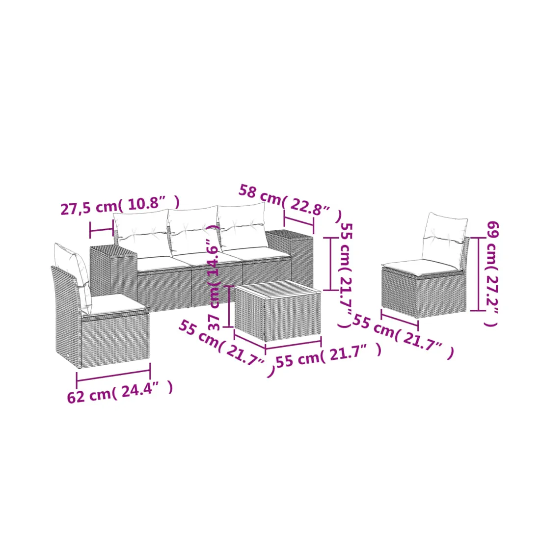 - Dimensions : 55 x 55 x 37 cm (L x l x H)