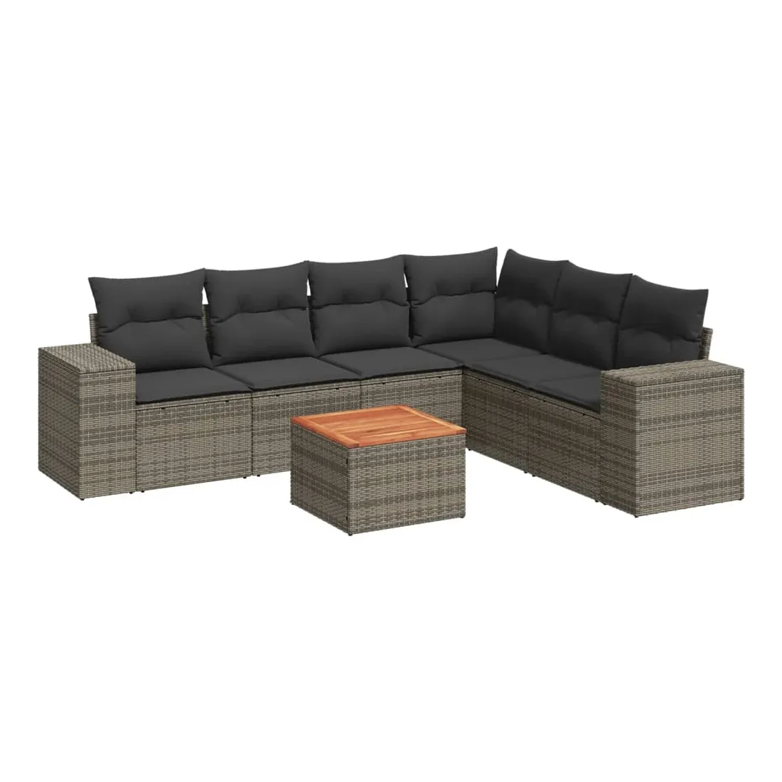Salon de jardin avec coussins 7 pcs gris résine tressée