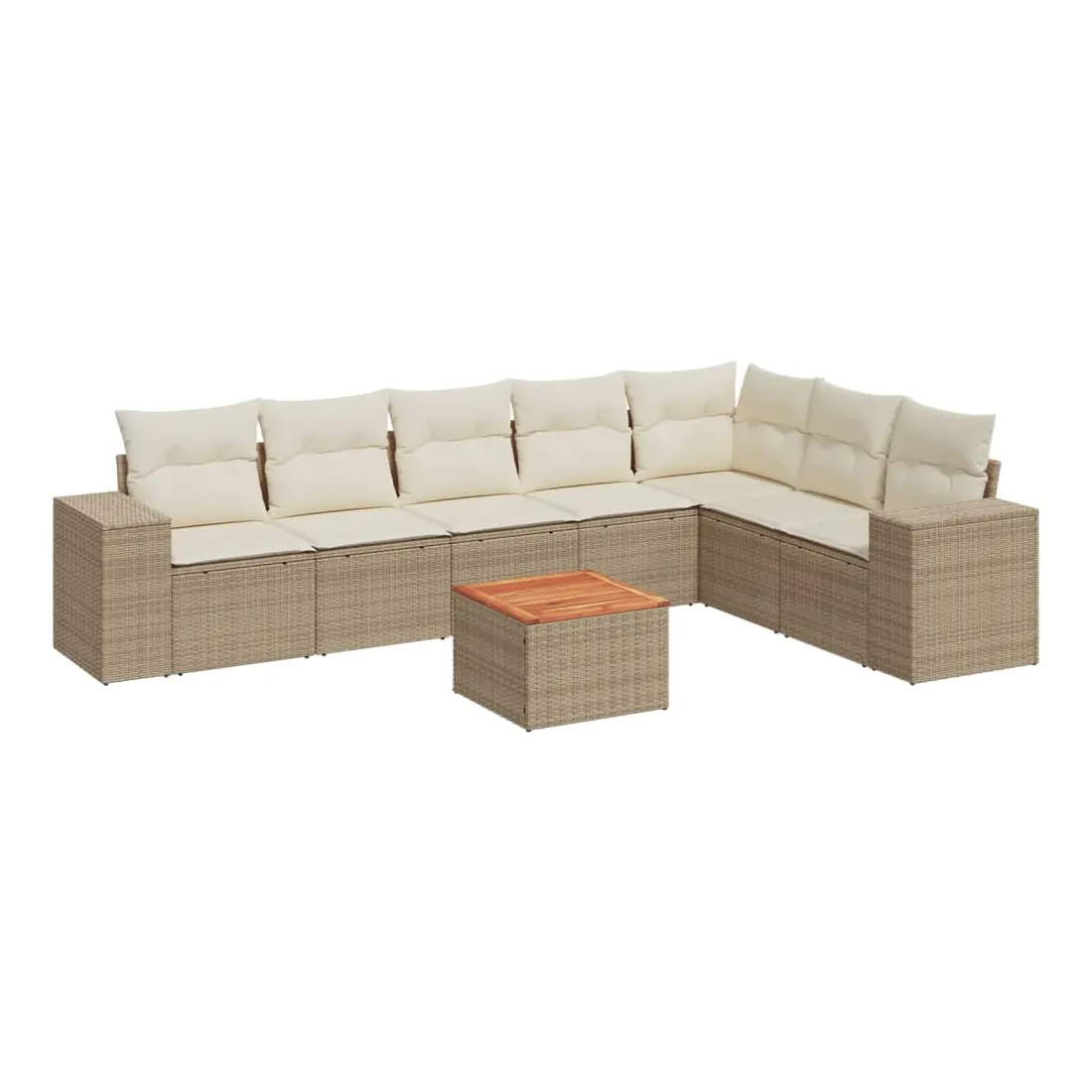 Cet ensemble de canapés de jardin est le complément parfait de votre arrière-cour, terrasse ou patio, offrant un espace confortable et accueillant pour discuter avec la famille et les amis ou simplement se détendre et profiter de l'extérieur. Matériau durable : la résine tressée, également connue sous le nom de poly rotin, est un matériau synthétique solide et nécessitant peu d'entretien qui ressemble au rotin naturel. Il est léger, facile à nettoyer et couramment utilisé pour les meubles d'extérieur en raison de sa durabilité et de ses propriétés de résistance aux intempéries. Fonction de rangement avec sac résistant à l'eau : chaque siège de jardin dispose d'un espace de rangement sous l'assise, complété par un sac résistant à l'eau pour ranger les coussins, les jouets et d'autres objets. Les sacs intérieurs sont dotés d'un couvercle et peuvent être solidement fixés aux sièges à l'aide de bandes auto-agrippantes pour plus de stabilité. Dessus stable et facile à nettoyer : cette table de jardin a un dessus en bois d'acacia robuste, durable et facile à nettoyer avec un chiffon humide. Expérience d'assise confortable : ce mobilier d'extérieur, doté de coussins épais, offre une expérience d'assise confortable. Conception modulaire : cet ensemble de meubles d'extérieur a une conception modulaire, ce qui le rend complètement flexible et facile à déplacer, afin que vous puissiez créer un agencement de meubles d'extérieur personnalisé. Bon à savoir :Pour que vos meubles d'extérieur restent beaux, nous vous recommandons de les protéger avec une housse imperméable.