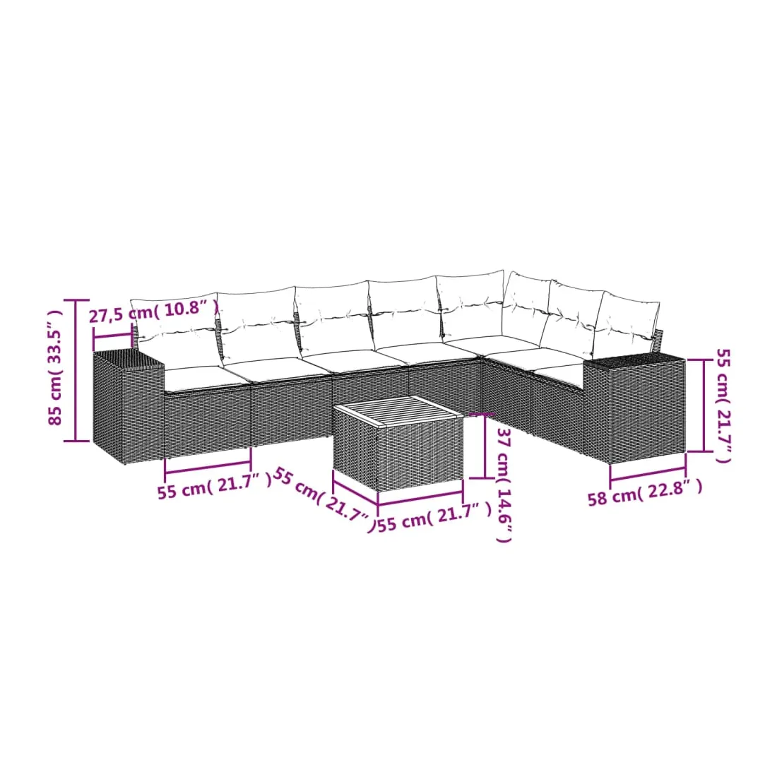 - Dimensions du coussin de dossier : 55 x 45 x 13 cm (L x l x é)