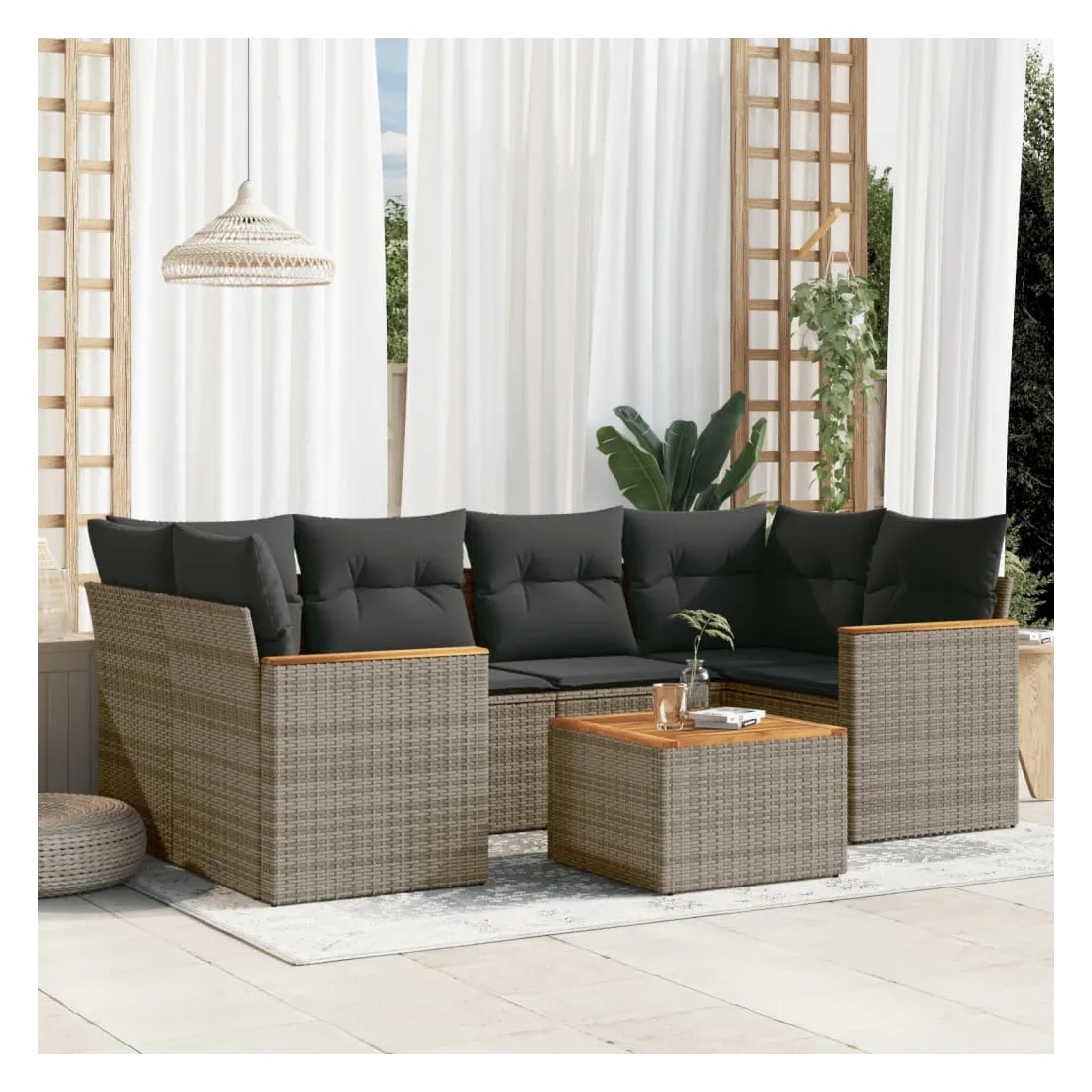 Cet ensemble de canapés de jardin est le complément parfait de votre arrière-cour, terrasse ou patio, offrant un espace confortable et accueillant pour discuter avec la famille et les amis ou simplement se détendre et profiter de l'extérieur. Matériau durable : la résine tressée, également connue sous le nom de poly rotin, est un matériau synthétique solide et nécessitant peu d'entretien qui ressemble au rotin naturel. Il est léger, facile à nettoyer et couramment utilisé pour les meubles d'extérieur en raison de sa durabilité et de ses propriétés de résistance aux intempéries.Fonction de rangement avec sac résistant à l'eau : le mobilier de jardin dispose d'un espace de rangement sous l'assise, complété par un sac résistant à l'eau pour ranger coussins, jouets et autres objets. Le sac intérieur peut être solidement fixé au mobilier d'extérieur grâce à des attaches auto-agrippantes pour plus de stabilité.Dessus stable et facile à nettoyer : cette table de jardin a un dessus en bois d'acacia robuste, durable et facile à nettoyer avec un chiffon humide.Housse amovible et lavable : ces coussins de siège sont dotés de housses amovibles pour un lavage et un entretien faciles.Conception modulaire : cet ensemble de meubles d'extérieur a une conception modulaire, ce qui le rend complètement flexible et facile à déplacer, afin que vous puissiez créer un agencement de meubles d'extérieur personnalisé. Bon à savoir :Pour que vos meubles d'extérieur restent beaux, nous vous recommandons de les protéger avec une housse imperméable.
