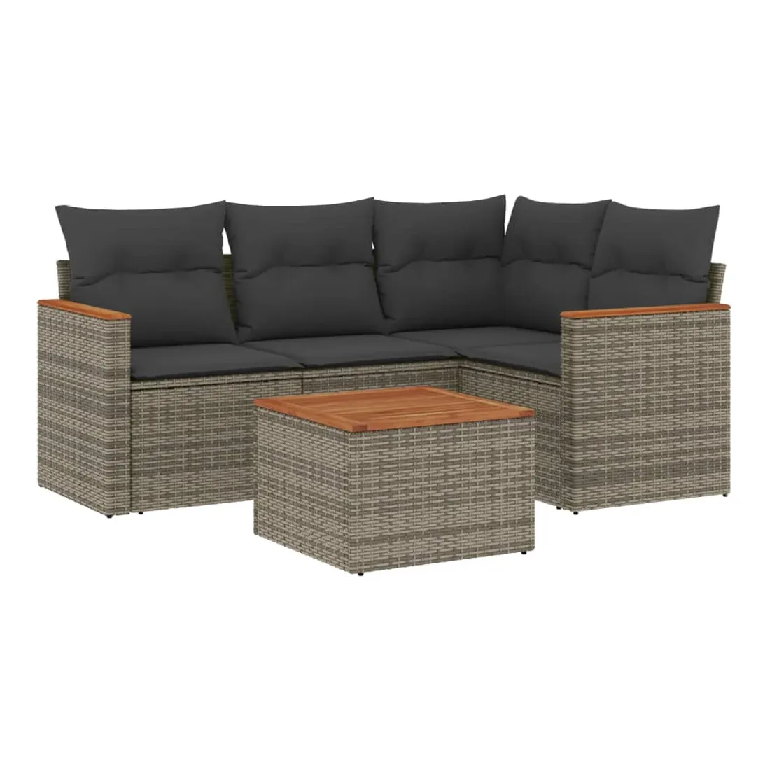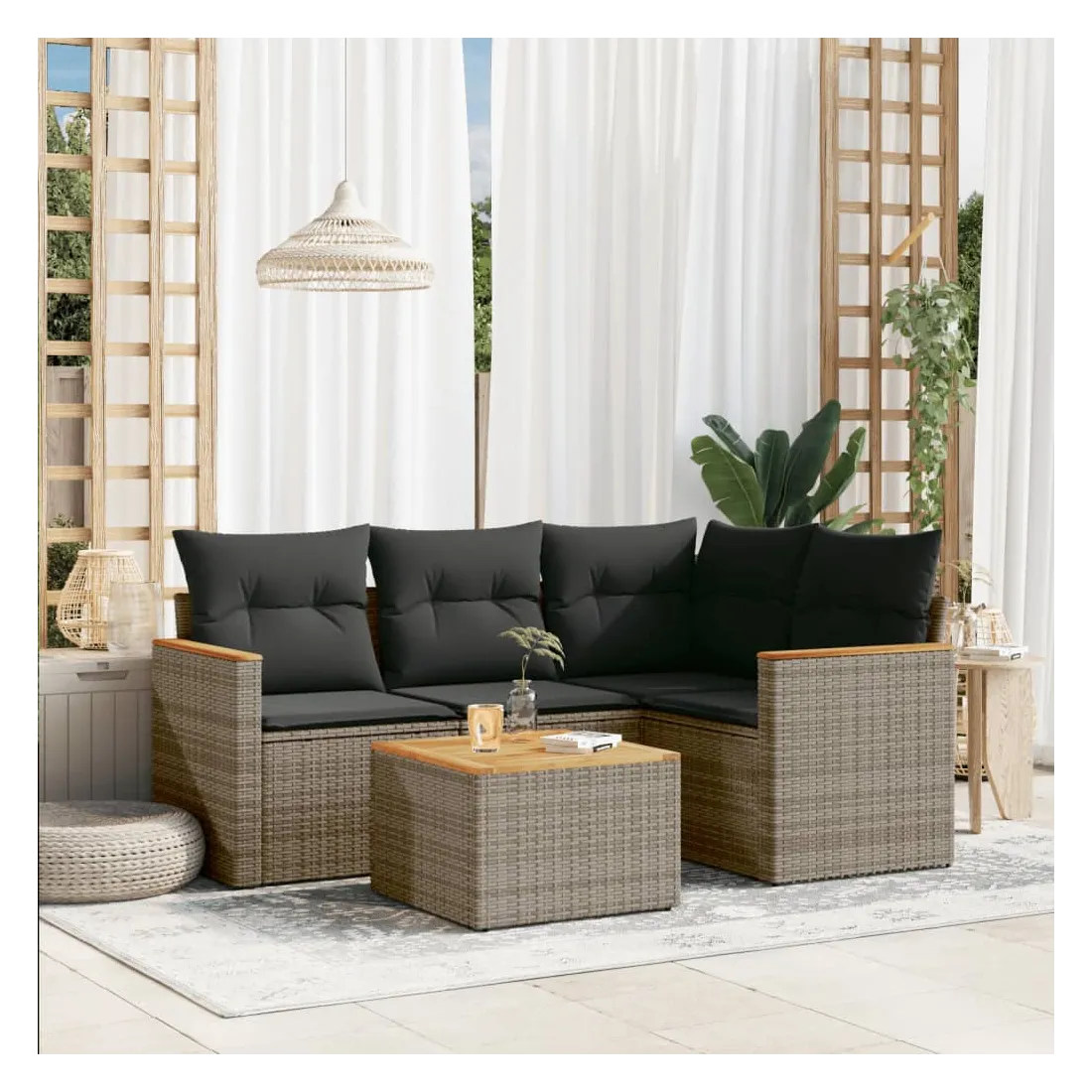 Cet ensemble de canapés de jardin est le complément parfait de votre arrière-cour, terrasse ou patio, offrant un espace confortable et accueillant pour discuter avec la famille et les amis ou simplement se détendre et profiter de l'extérieur. Matériau durable : la résine tressée, également connue sous le nom de poly rotin, est un matériau synthétique solide et nécessitant peu d'entretien qui ressemble au rotin naturel. Il est léger, facile à nettoyer et couramment utilisé pour les meubles d'extérieur en raison de sa durabilité et de ses propriétés de résistance aux intempéries.Fonction de rangement avec sac résistant à l'eau : le mobilier de jardin dispose d'un espace de rangement sous l'assise, complété par un sac résistant à l'eau pour ranger coussins, jouets et autres objets. Le sac intérieur peut être solidement fixé au mobilier d'extérieur grâce à des attaches auto-agrippantes pour plus de stabilité.Dessus stable et facile à nettoyer : cette table de jardin a un dessus en bois d'acacia robuste, durable et facile à nettoyer avec un chiffon humide.Housse amovible et lavable : ces coussins de siège sont dotés de housses amovibles pour un lavage et un entretien faciles.Conception modulaire : cet ensemble de meubles d'extérieur a une conception modulaire, ce qui le rend complètement flexible et facile à déplacer, afin que vous puissiez créer un agencement de meubles d'extérieur personnalisé. Bon à savoir :Pour que vos meubles d'extérieur restent beaux, nous vous recommandons de les protéger avec une housse imperméable.