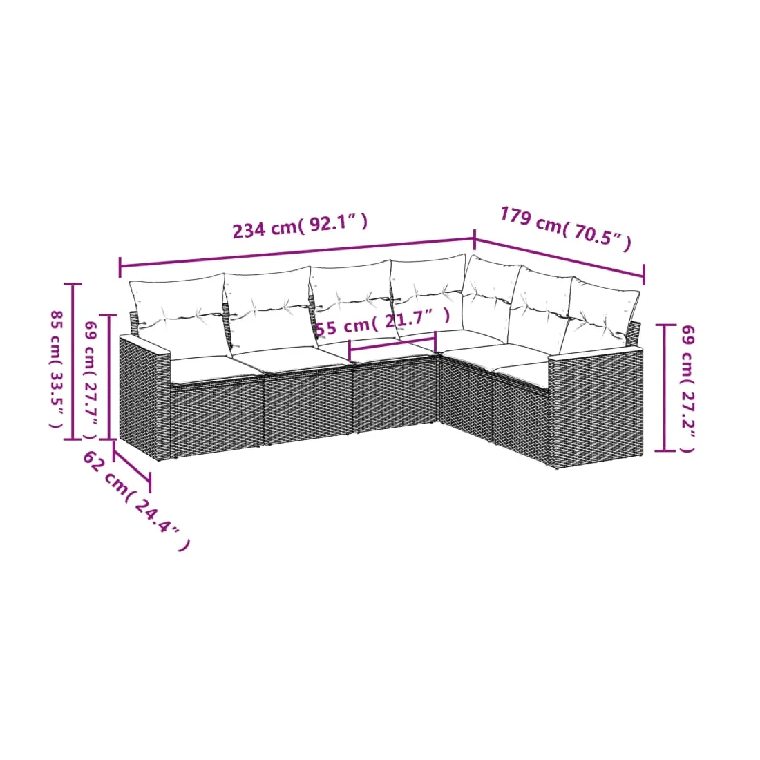 - Dimensions du coussin de siège : 55 x 55 x 3 cm (l x P x é)