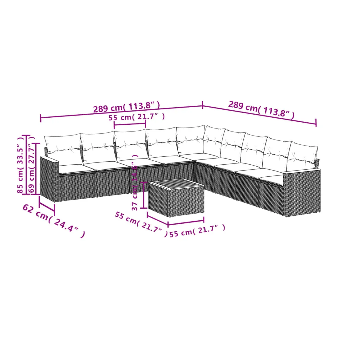 - 9 x coussin d'assise avec housse amovible et lavable