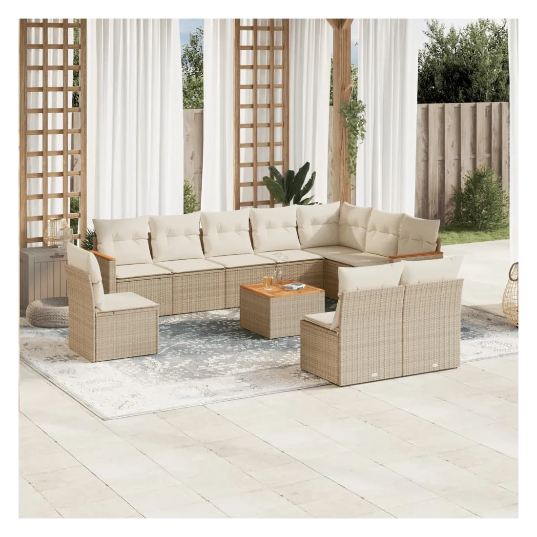 Cet ensemble de canapés de jardin est le complément parfait de votre arrière-cour, terrasse ou patio, offrant un espace confortable et accueillant pour discuter avec la famille et les amis ou simplement se détendre et profiter de l'extérieur. Matériau durable : la résine tressée, également connue sous le nom de poly rotin, est un matériau synthétique solide et nécessitant peu d'entretien qui ressemble au rotin naturel. Il est léger, facile à nettoyer et couramment utilisé pour les meubles d'extérieur en raison de sa durabilité et de ses propriétés de résistance aux intempéries.Fonction de rangement avec sac résistant à l'eau : le mobilier de jardin dispose d'un espace de rangement sous l'assise, complété par un sac résistant à l'eau pour ranger coussins, jouets et autres objets. Le sac intérieur peut être solidement fixé au mobilier d'extérieur grâce à des attaches auto-agrippantes pour plus de stabilité.Dessus stable et facile à nettoyer : cette table de jardin a un dessus en bois d'acacia robuste, durable et facile à nettoyer avec un chiffon humide.Housse amovible et lavable : ces coussins de siège sont dotés de housses amovibles pour un lavage et un entretien faciles.Conception modulaire : cet ensemble de meubles d'extérieur a une conception modulaire, ce qui le rend complètement flexible et facile à déplacer, afin que vous puissiez créer un agencement de meubles d'extérieur personnalisé. Bon à savoir :Pour que vos meubles d'extérieur restent beaux, nous vous recommandons de les protéger avec une housse imperméable.