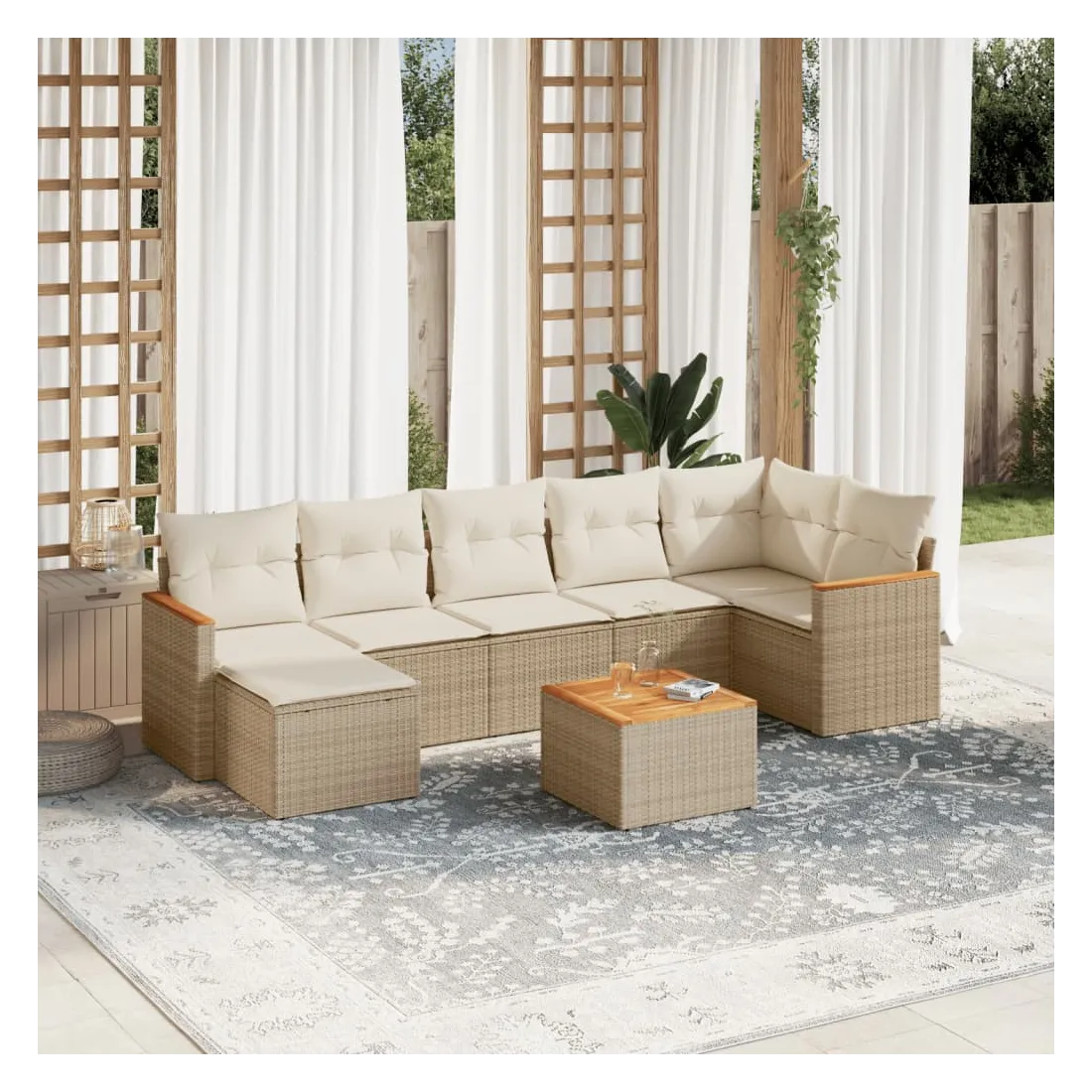 Salon de jardin avec coussins 8 pcs beige résine tressée