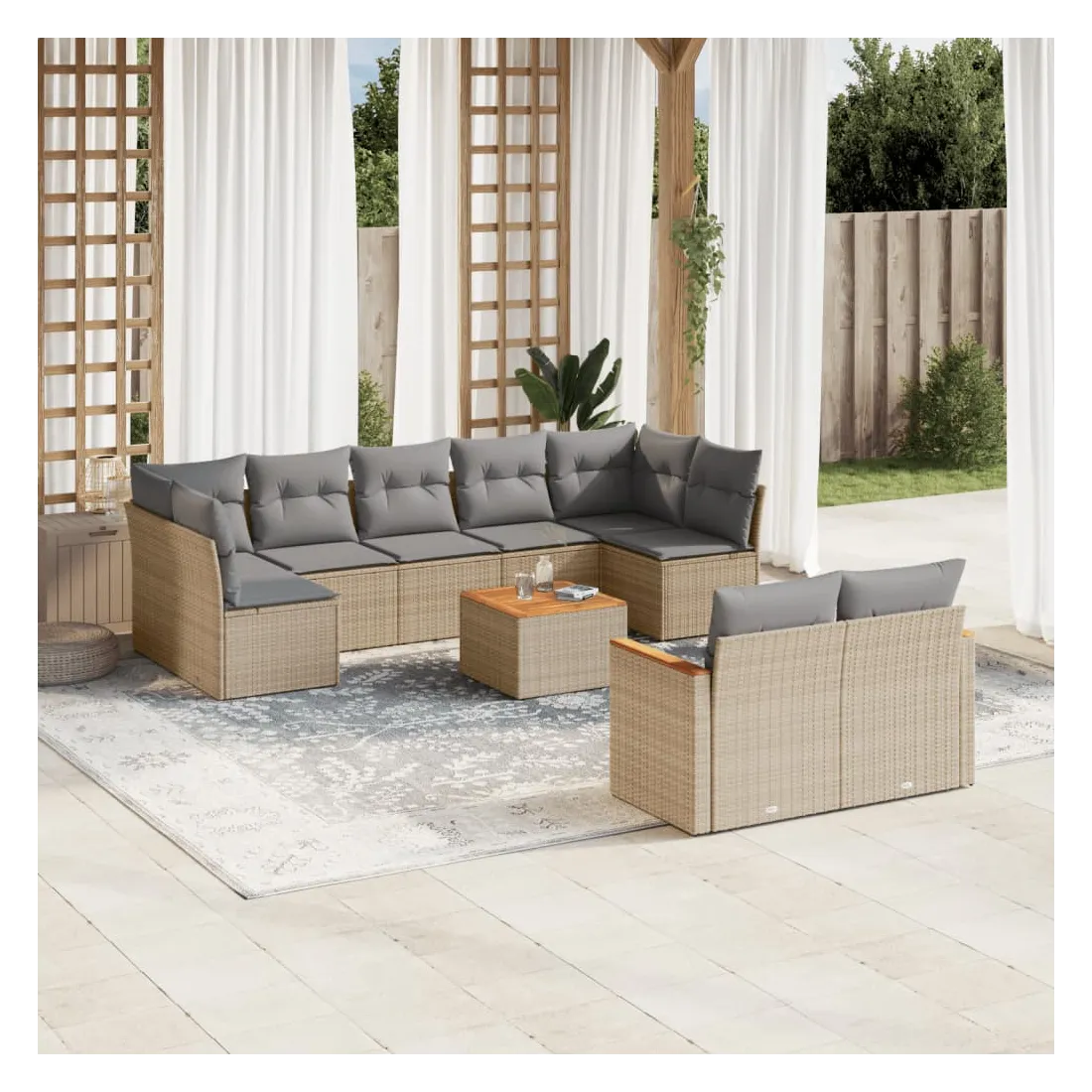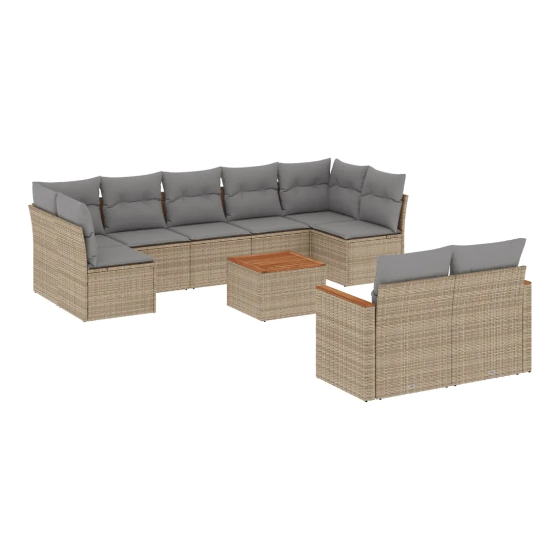 Salon de jardin avec coussins 10 pcs beige résine tressée