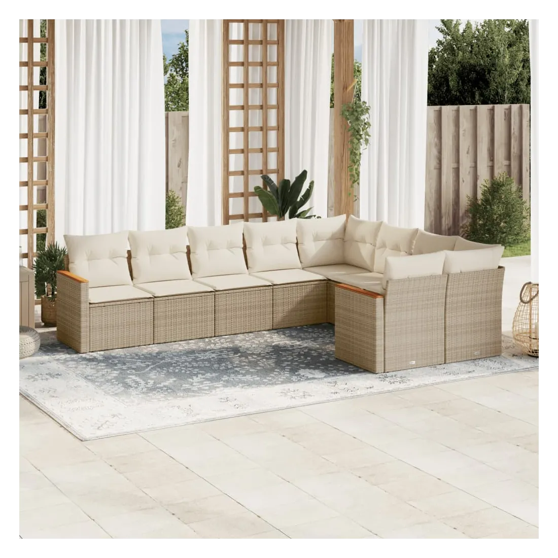 Salon de jardin avec coussins 9 pcs beige résine tressée