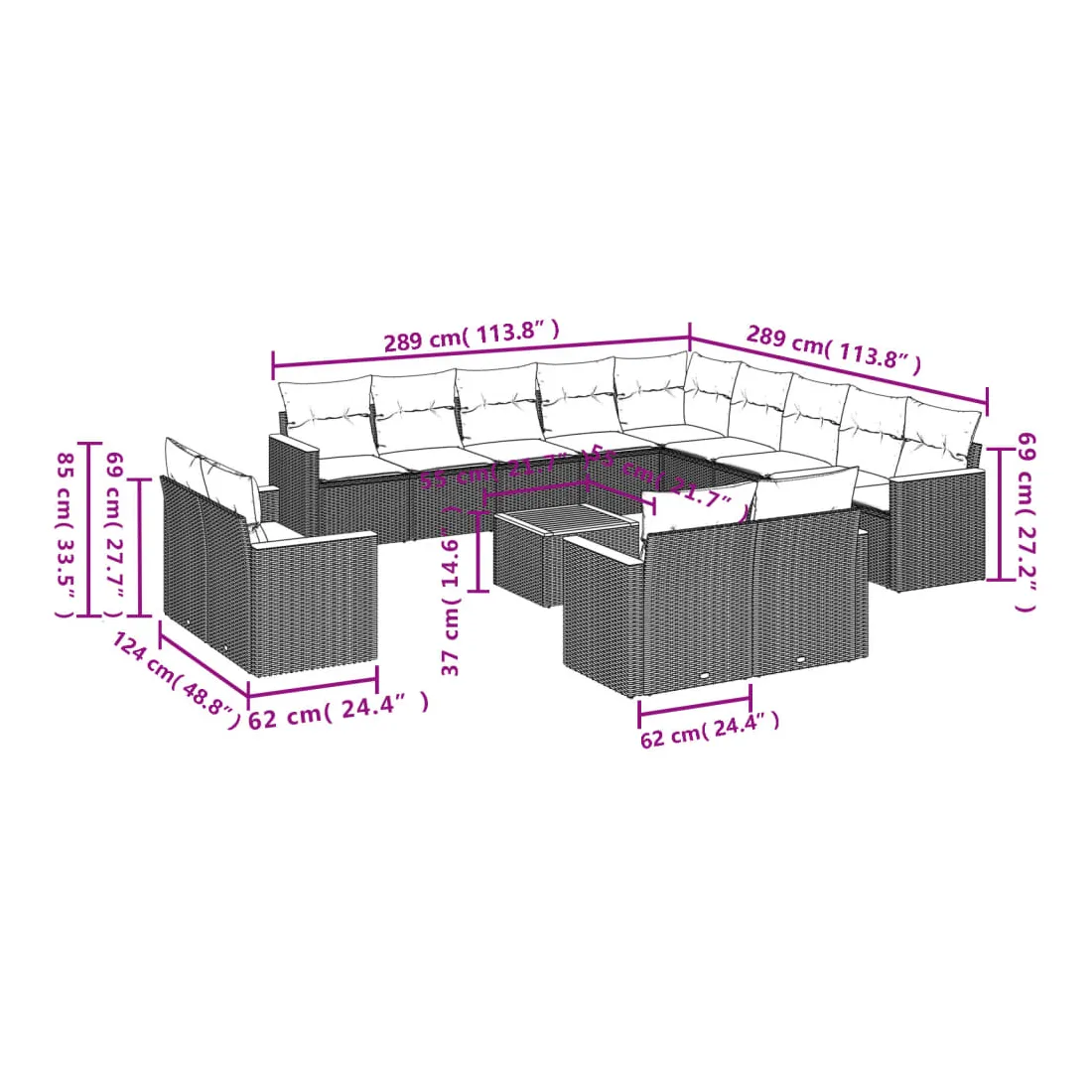 - Dimensions : 55 x 55 x 37 cm (L x l x H)