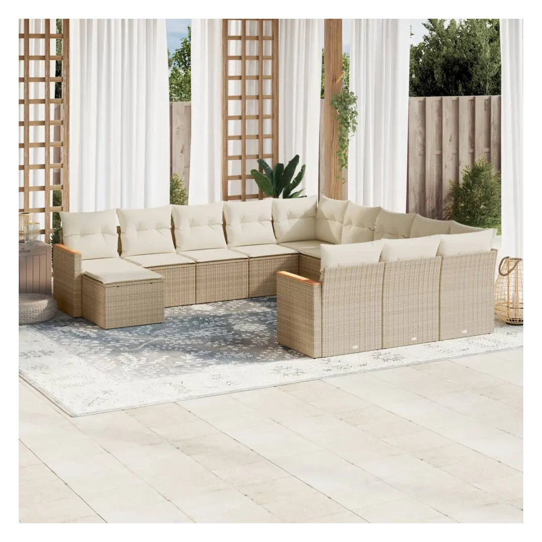 Cet ensemble de canapés de jardin est le complément parfait de votre arrière-cour, terrasse ou patio, offrant un espace confortable et accueillant pour discuter avec la famille et les amis ou simplement se détendre et profiter de l'extérieur. Matériau durable : la résine tressée, également connue sous le nom de poly rotin, est un matériau synthétique solide et nécessitant peu d'entretien qui ressemble au rotin naturel. Il est léger, facile à nettoyer et couramment utilisé pour les meubles d'extérieur en raison de sa durabilité et de ses propriétés de résistance aux intempéries.Fonction de rangement avec sac résistant à l'eau : le mobilier de jardin dispose d'un espace de rangement sous l'assise, complété par un sac résistant à l'eau pour ranger coussins, jouets et autres objets. Le sac intérieur peut être solidement fixé au mobilier d'extérieur grâce à des attaches auto-agrippantes pour plus de stabilité.Housse amovible et lavable : ces coussins de siège sont dotés de housses amovibles pour un lavage et un entretien faciles.Conception modulaire : cet ensemble de meubles d'extérieur a une conception modulaire, ce qui le rend complètement flexible et facile à déplacer, afin que vous puissiez créer un agencement de meubles d'extérieur personnalisé. Bon à savoir :Pour que vos meubles d'extérieur restent beaux, nous vous recommandons de les protéger avec une housse imperméable.