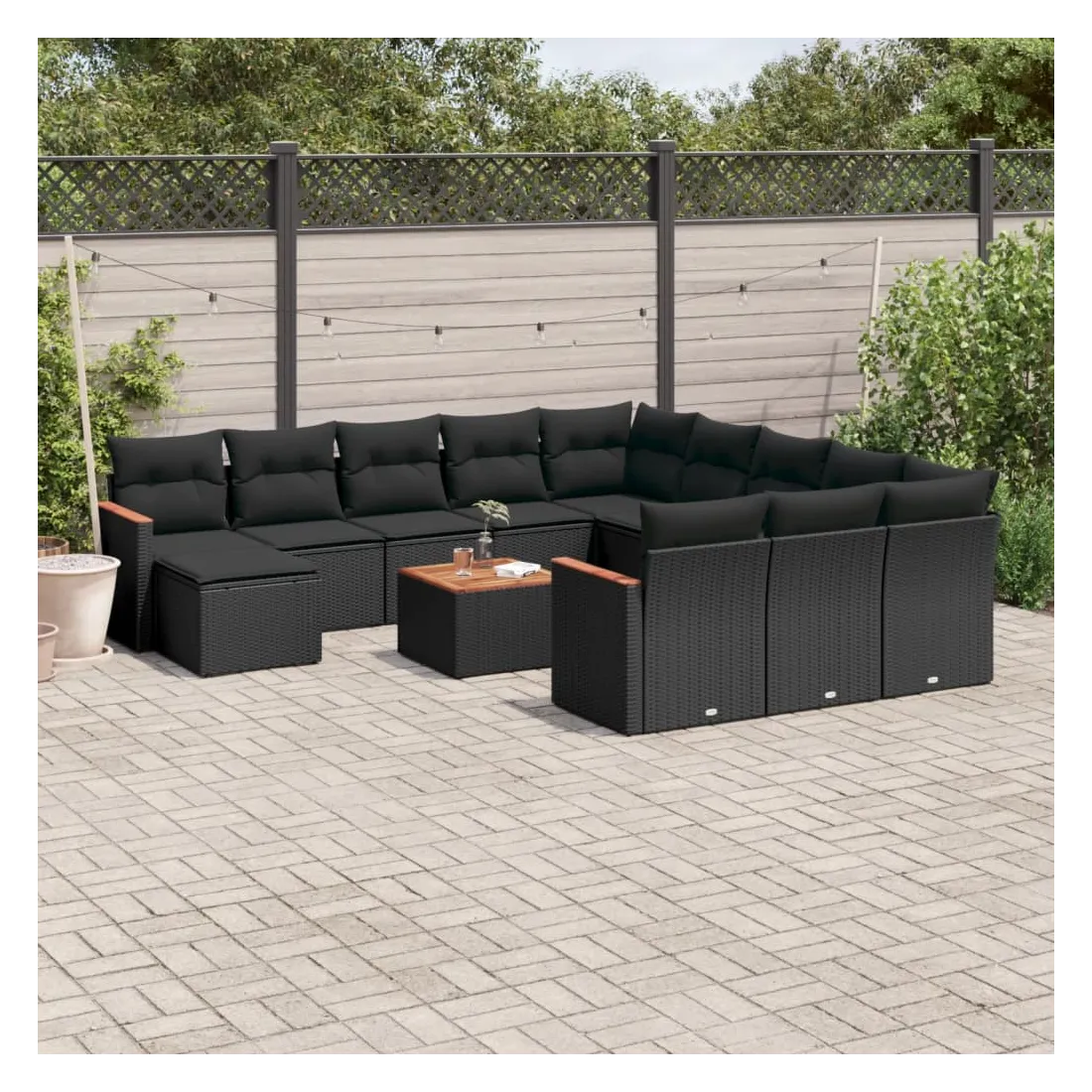 Cet ensemble de canapés de jardin est le complément parfait de votre arrière-cour, terrasse ou patio, offrant un espace confortable et accueillant pour discuter avec la famille et les amis ou simplement se détendre et profiter de l'extérieur. Matériau durable : la résine tressée, également connue sous le nom de poly rotin, est un matériau synthétique solide et nécessitant peu d'entretien qui ressemble au rotin naturel. Il est léger, facile à nettoyer et couramment utilisé pour les meubles d'extérieur en raison de sa durabilité et de ses propriétés de résistance aux intempéries.Fonction de rangement avec sac résistant à l'eau : le mobilier de jardin dispose d'un espace de rangement sous l'assise, complété par un sac résistant à l'eau pour ranger coussins, jouets et autres objets. Le sac intérieur peut être solidement fixé au mobilier d'extérieur grâce à des attaches auto-agrippantes pour plus de stabilité.Dessus stable et facile à nettoyer : cette table de jardin a un dessus en bois d'acacia robuste, durable et facile à nettoyer avec un chiffon humide.Housse amovible et lavable : ces coussins de siège sont dotés de housses amovibles pour un lavage et un entretien faciles.Conception modulaire : cet ensemble de meubles d'extérieur a une conception modulaire, ce qui le rend complètement flexible et facile à déplacer, afin que vous puissiez créer un agencement de meubles d'extérieur personnalisé. Bon à savoir :Pour que vos meubles d'extérieur restent beaux, nous vous recommandons de les protéger avec une housse imperméable.