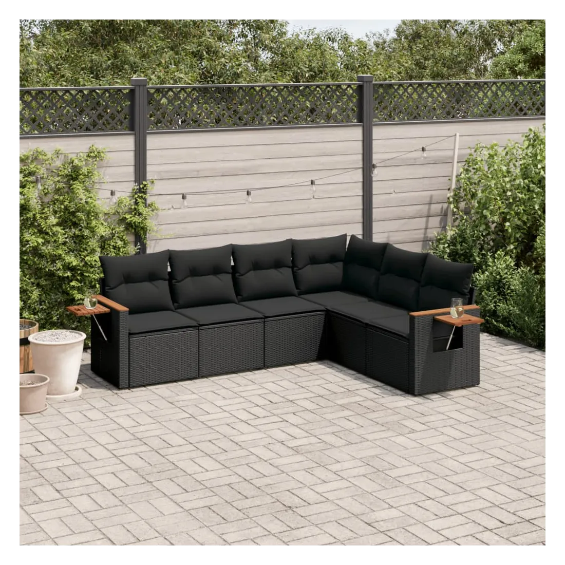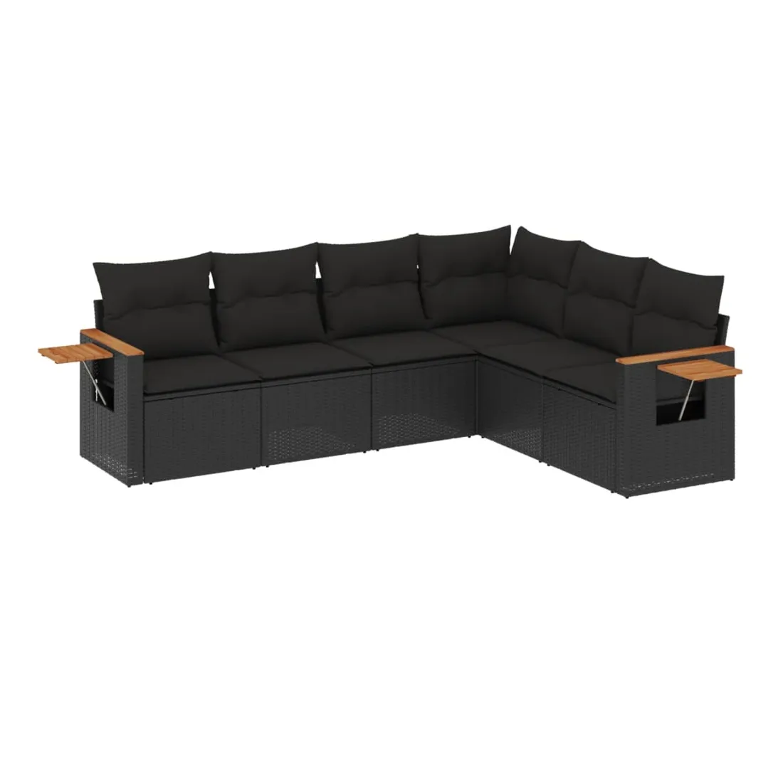 Salon de jardin 6 pcs avec coussins noir résine tressée