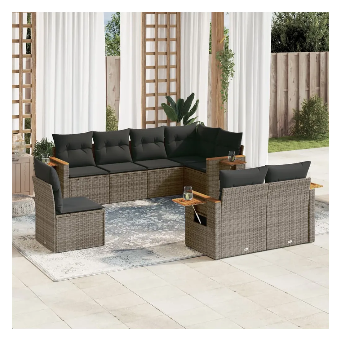 Cet ensemble de canapés de jardin est le complément parfait de votre arrière-cour, terrasse ou patio, offrant un espace confortable et accueillant pour discuter avec la famille et les amis ou simplement se détendre et profiter de l'extérieur. Matériau durable : la résine tressée, également connue sous le nom de poly rotin, est un matériau synthétique solide et nécessitant peu d'entretien qui ressemble au rotin naturel. Il est léger, facile à nettoyer et couramment utilisé pour les meubles d'extérieur en raison de sa durabilité et de ses propriétés de résistance aux intempéries.Fonction de rangement avec sac résistant à l'eau : le mobilier de jardin dispose d'un espace de rangement sous l'assise, complété par un sac résistant à l'eau pour ranger coussins, jouets et autres objets. Le sac intérieur peut être solidement fixé au mobilier d'extérieur grâce à des attaches auto-agrippantes pour plus de stabilité.Table d'appoint pratique : ce mobilier d'extérieur comprend une table d'appoint pliable avec un ressort à gaz sur les accoudoirs, offrant un endroit pratique pour garder vos essentiels à portée de main.Housse amovible et lavable : ces coussins de siège sont dotés de housses amovibles pour un lavage et un entretien faciles.Conception modulaire : cet ensemble de meubles d'extérieur a une conception modulaire, ce qui le rend complètement flexible et facile à déplacer, afin que vous puissiez créer un agencement de meubles d'extérieur personnalisé. Bon à savoir :Pour que vos meubles d'extérieur restent beaux, nous vous recommandons de les protéger avec une housse imperméable.