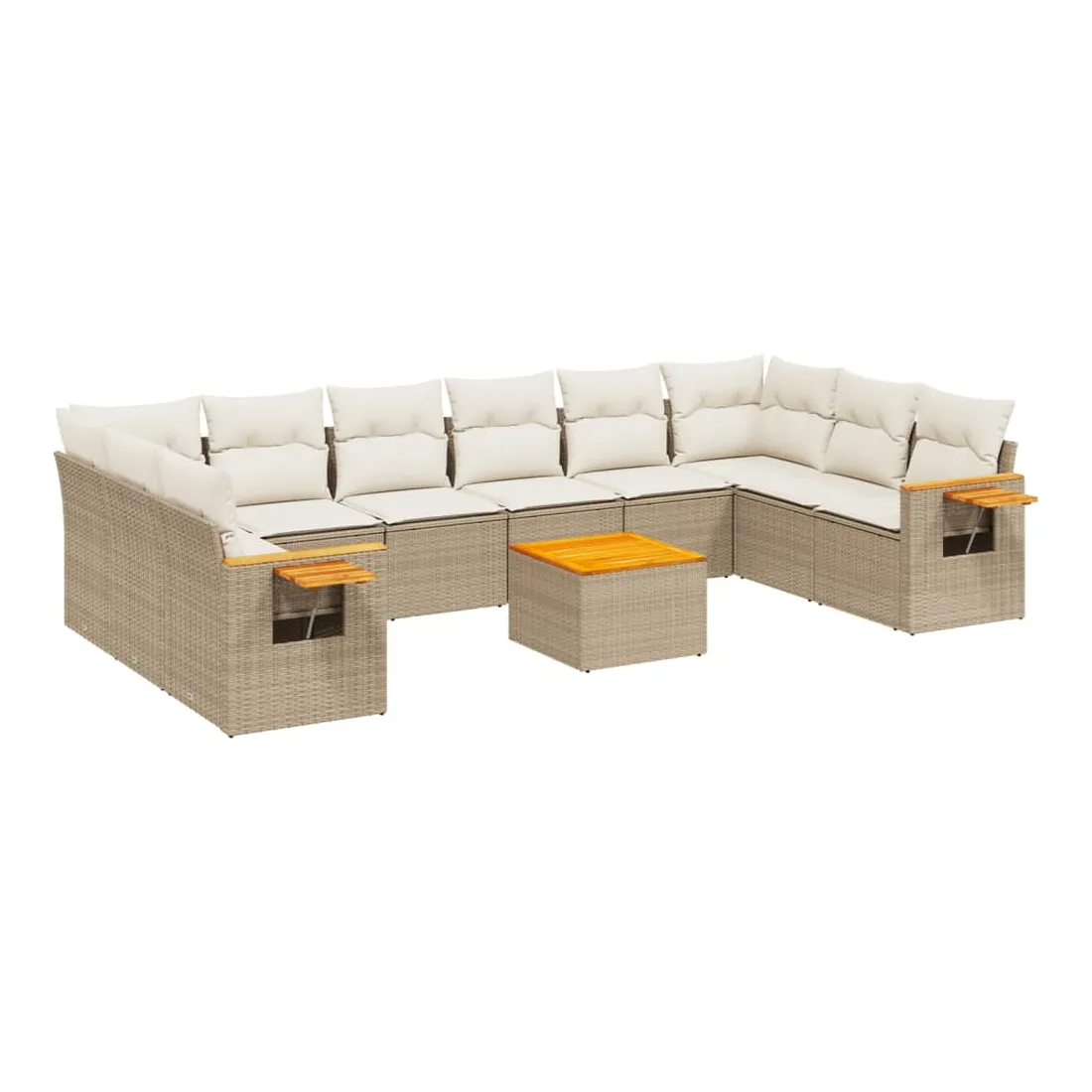 Salon de jardin 11 pcs avec coussins beige résine tressée