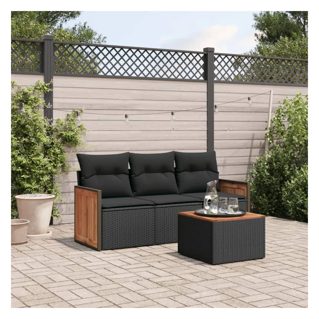 Cet ensemble de canapés de jardin est le complément parfait de votre arrière-cour, terrasse ou patio, offrant un espace confortable et accueillant pour discuter avec la famille et les amis ou simplement se détendre et profiter de l'extérieur. Matériau durable : la résine tressée, également connue sous le nom de poly rotin, est un matériau synthétique solide et nécessitant peu d'entretien qui ressemble au rotin naturel. Il est léger, facile à nettoyer et couramment utilisé pour les meubles d'extérieur en raison de sa durabilité et de ses propriétés de résistance aux intempéries.Fonction de rangement avec sac résistant à l'eau : le mobilier de jardin dispose d'un espace de rangement sous l'assise, complété par un sac résistant à l'eau pour ranger coussins, jouets et autres objets. Le sac intérieur peut être solidement fixé au mobilier d'extérieur grâce à des attaches auto-agrippantes pour plus de stabilité.Dessus stable et facile à nettoyer : cette table de jardin a un dessus en bois d'acacia robuste, durable et facile à nettoyer avec un chiffon humide.Housse amovible et lavable : ces coussins de siège sont dotés de housses amovibles pour un lavage et un entretien faciles.Conception modulaire : cet ensemble de meubles d'extérieur a une conception modulaire, ce qui le rend complètement flexible et facile à déplacer, afin que vous puissiez créer un agencement de meubles d'extérieur personnalisé. Bon à savoir :Pour que vos meubles d'extérieur restent beaux, nous vous recommandons de les protéger avec une housse imperméable.