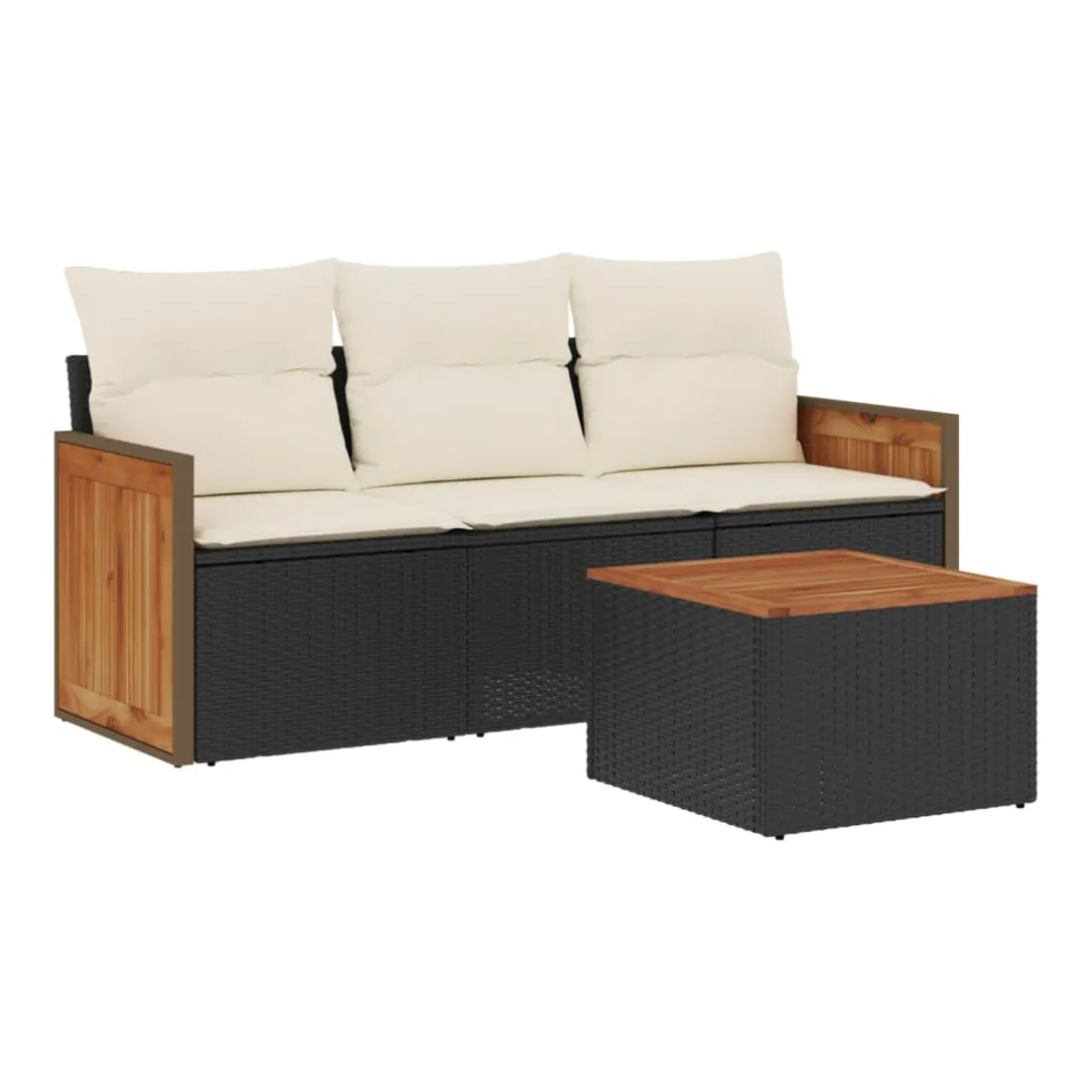 Cet ensemble de canapés de jardin est le complément parfait de votre arrière-cour, terrasse ou patio, offrant un espace confortable et accueillant pour discuter avec la famille et les amis ou simplement se détendre et profiter de l'extérieur. Matériau durable : la résine tressée, également connue sous le nom de poly rotin, est un matériau synthétique solide et nécessitant peu d'entretien qui ressemble au rotin naturel. Il est léger, facile à nettoyer et couramment utilisé pour les meubles d'extérieur en raison de sa durabilité et de ses propriétés de résistance aux intempéries.Fonction de rangement avec sac résistant à l'eau : le mobilier de jardin dispose d'un espace de rangement sous l'assise, complété par un sac résistant à l'eau pour ranger coussins, jouets et autres objets. Le sac intérieur peut être solidement fixé au mobilier d'extérieur grâce à des attaches auto-agrippantes pour plus de stabilité.Dessus stable et facile à nettoyer : cette table de jardin a un dessus en bois d'acacia robuste, durable et facile à nettoyer avec un chiffon humide.Housse amovible et lavable : ces coussins de siège sont dotés de housses amovibles pour un lavage et un entretien faciles.Conception modulaire : cet ensemble de meubles d'extérieur a une conception modulaire, ce qui le rend complètement flexible et facile à déplacer, afin que vous puissiez créer un agencement de meubles d'extérieur personnalisé. Bon à savoir :Pour que vos meubles d'extérieur restent beaux, nous vous recommandons de les protéger avec une housse imperméable.