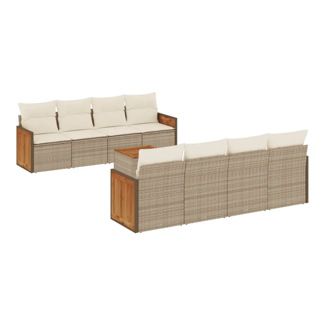 Cet ensemble de canapés de jardin est le complément parfait de votre arrière-cour, terrasse ou patio, offrant un espace confortable et accueillant pour discuter avec la famille et les amis ou simplement se détendre et profiter de l'extérieur. Matériau durable : la résine tressée, également connue sous le nom de poly rotin, est un matériau synthétique solide et nécessitant peu d'entretien qui ressemble au rotin naturel. Il est léger, facile à nettoyer et couramment utilisé pour les meubles d'extérieur en raison de sa durabilité et de ses propriétés de résistance aux intempéries.Fonction de rangement avec sac résistant à l'eau : le mobilier de jardin dispose d'un espace de rangement sous l'assise, complété par un sac résistant à l'eau pour ranger coussins, jouets et autres objets. Le sac intérieur peut être solidement fixé au mobilier d'extérieur grâce à des attaches auto-agrippantes pour plus de stabilité.Dessus stable et facile à nettoyer : cette table de jardin a un dessus en bois d'acacia robuste, durable et facile à nettoyer avec un chiffon humide.Housse amovible et lavable : ces coussins de siège sont dotés de housses amovibles pour un lavage et un entretien faciles.Conception modulaire : cet ensemble de meubles d'extérieur a une conception modulaire, ce qui le rend complètement flexible et facile à déplacer, afin que vous puissiez créer un agencement de meubles d'extérieur personnalisé. Bon à savoir :Pour que vos meubles d'extérieur restent beaux, nous vous recommandons de les protéger avec une housse imperméable.