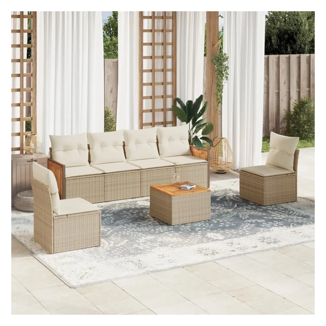 Cet ensemble de canapés de jardin est le complément parfait de votre arrière-cour, terrasse ou patio, offrant un espace confortable et accueillant pour discuter avec la famille et les amis ou simplement se détendre et profiter de l'extérieur. Matériau durable : la résine tressée, également connue sous le nom de poly rotin, est un matériau synthétique solide et nécessitant peu d'entretien qui ressemble au rotin naturel. Il est léger, facile à nettoyer et couramment utilisé pour les meubles d'extérieur en raison de sa durabilité et de ses propriétés de résistance aux intempéries.Fonction de rangement avec sac résistant à l'eau : le mobilier de jardin dispose d'un espace de rangement sous l'assise, complété par un sac résistant à l'eau pour ranger coussins, jouets et autres objets. Le sac intérieur peut être solidement fixé au mobilier d'extérieur grâce à des attaches auto-agrippantes pour plus de stabilité.Dessus stable et facile à nettoyer : cette table de jardin a un dessus en bois d'acacia robuste, durable et facile à nettoyer avec un chiffon humide.Housse amovible et lavable : ces coussins de siège sont dotés de housses amovibles pour un lavage et un entretien faciles.Conception modulaire : cet ensemble de meubles d'extérieur a une conception modulaire, ce qui le rend complètement flexible et facile à déplacer, afin que vous puissiez créer un agencement de meubles d'extérieur personnalisé. Bon à savoir :Pour que vos meubles d'extérieur restent beaux, nous vous recommandons de les protéger avec une housse imperméable.