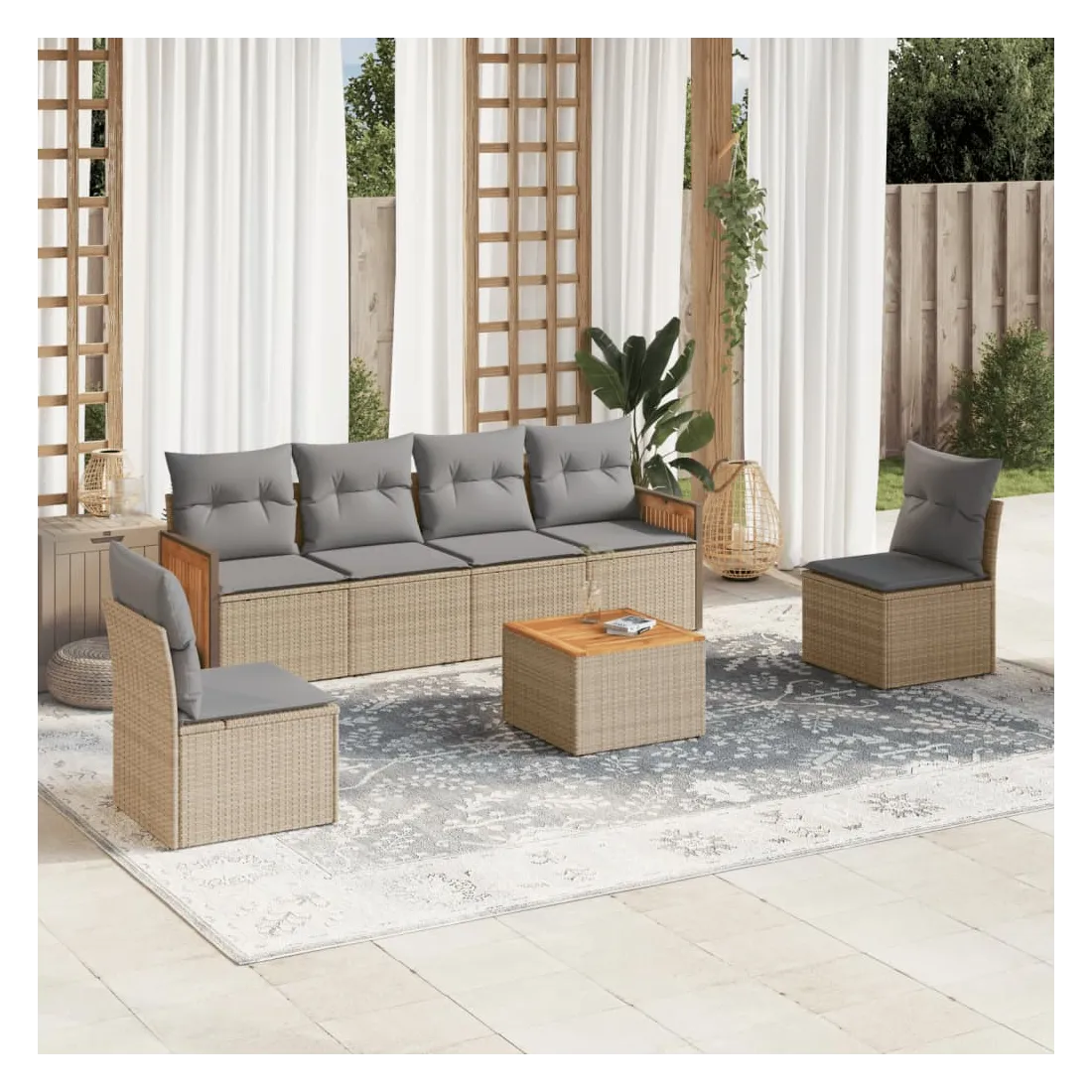 Cet ensemble de canapés de jardin est le complément parfait de votre arrière-cour, terrasse ou patio, offrant un espace confortable et accueillant pour discuter avec la famille et les amis ou simplement se détendre et profiter de l'extérieur. Matériau durable : la résine tressée, également connue sous le nom de poly rotin, est un matériau synthétique solide et nécessitant peu d'entretien qui ressemble au rotin naturel. Il est léger, facile à nettoyer et couramment utilisé pour les meubles d'extérieur en raison de sa durabilité et de ses propriétés de résistance aux intempéries.Fonction de rangement avec sac résistant à l'eau : le mobilier de jardin dispose d'un espace de rangement sous l'assise, complété par un sac résistant à l'eau pour ranger coussins, jouets et autres objets. Le sac intérieur peut être solidement fixé au mobilier d'extérieur grâce à des attaches auto-agrippantes pour plus de stabilité.Dessus stable et facile à nettoyer : cette table de jardin a un dessus en bois d'acacia robuste, durable et facile à nettoyer avec un chiffon humide.Housse amovible et lavable : ces coussins de siège sont dotés de housses amovibles pour un lavage et un entretien faciles.Conception modulaire : cet ensemble de meubles d'extérieur a une conception modulaire, ce qui le rend complètement flexible et facile à déplacer, afin que vous puissiez créer un agencement de meubles d'extérieur personnalisé. Bon à savoir :Pour que vos meubles d'extérieur restent beaux, nous vous recommandons de les protéger avec une housse imperméable.