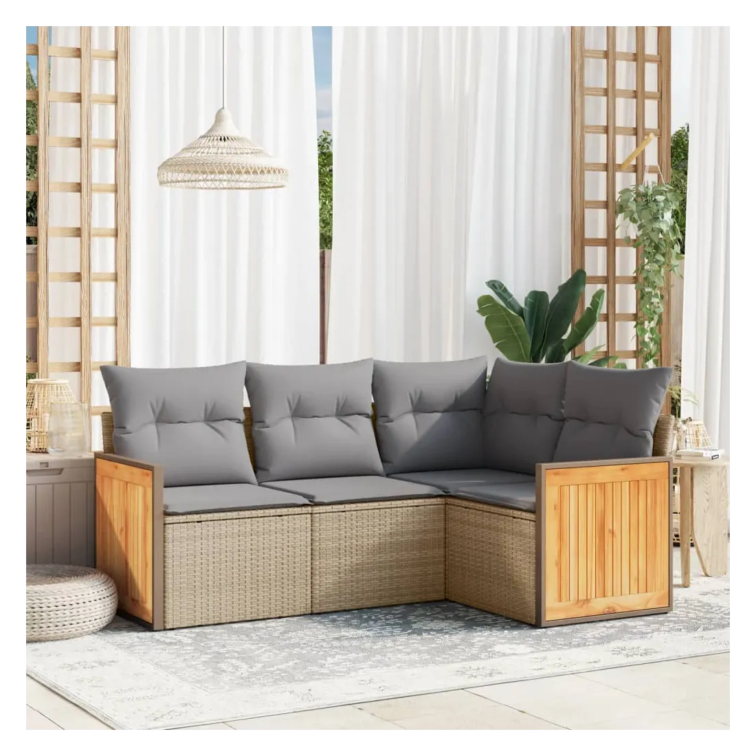 - Matériau : résine tressée, acier enduit de poudre, bois d'acacia massif avec finition à l'huile
