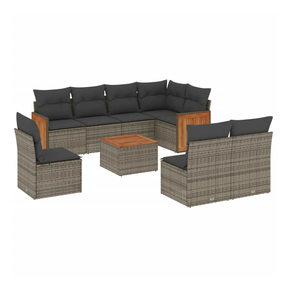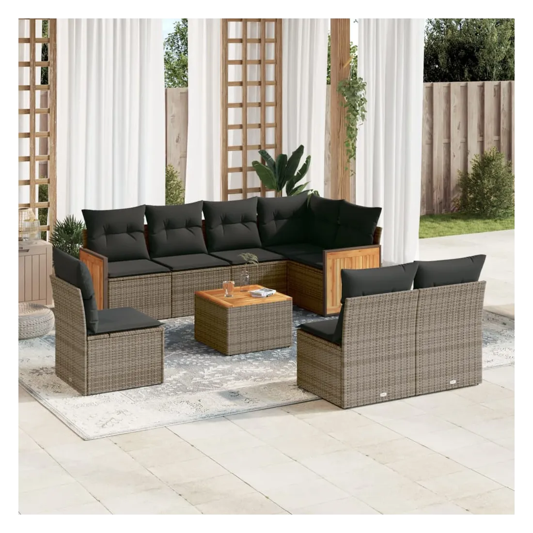 Cet ensemble de canapés de jardin est le complément parfait de votre arrière-cour, terrasse ou patio, offrant un espace confortable et accueillant pour discuter avec la famille et les amis ou simplement se détendre et profiter de l'extérieur. Matériau durable : la résine tressée, également connue sous le nom de poly rotin, est un matériau synthétique solide et nécessitant peu d'entretien qui ressemble au rotin naturel. Il est léger, facile à nettoyer et couramment utilisé pour les meubles d'extérieur en raison de sa durabilité et de ses propriétés de résistance aux intempéries.Fonction de rangement avec sac résistant à l'eau : le mobilier de jardin dispose d'un espace de rangement sous l'assise, complété par un sac résistant à l'eau pour ranger coussins, jouets et autres objets. Le sac intérieur peut être solidement fixé au mobilier d'extérieur grâce à des attaches auto-agrippantes pour plus de stabilité.Dessus stable et facile à nettoyer : cette table de jardin a un dessus en bois d'acacia robuste, durable et facile à nettoyer avec un chiffon humide.Housse amovible et lavable : ces coussins de siège sont dotés de housses amovibles pour un lavage et un entretien faciles.Conception modulaire : cet ensemble de meubles d'extérieur a une conception modulaire, ce qui le rend complètement flexible et facile à déplacer, afin que vous puissiez créer un agencement de meubles d'extérieur personnalisé. Bon à savoir :Pour que vos meubles d'extérieur restent beaux, nous vous recommandons de les protéger avec une housse imperméable.