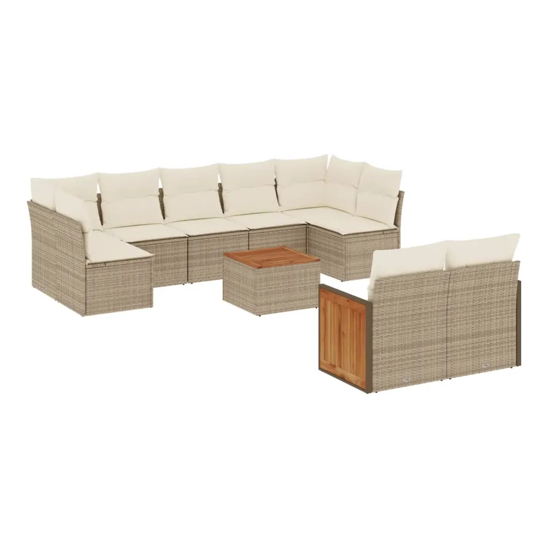 Salon de jardin avec coussins 10 pcs beige résine tressée