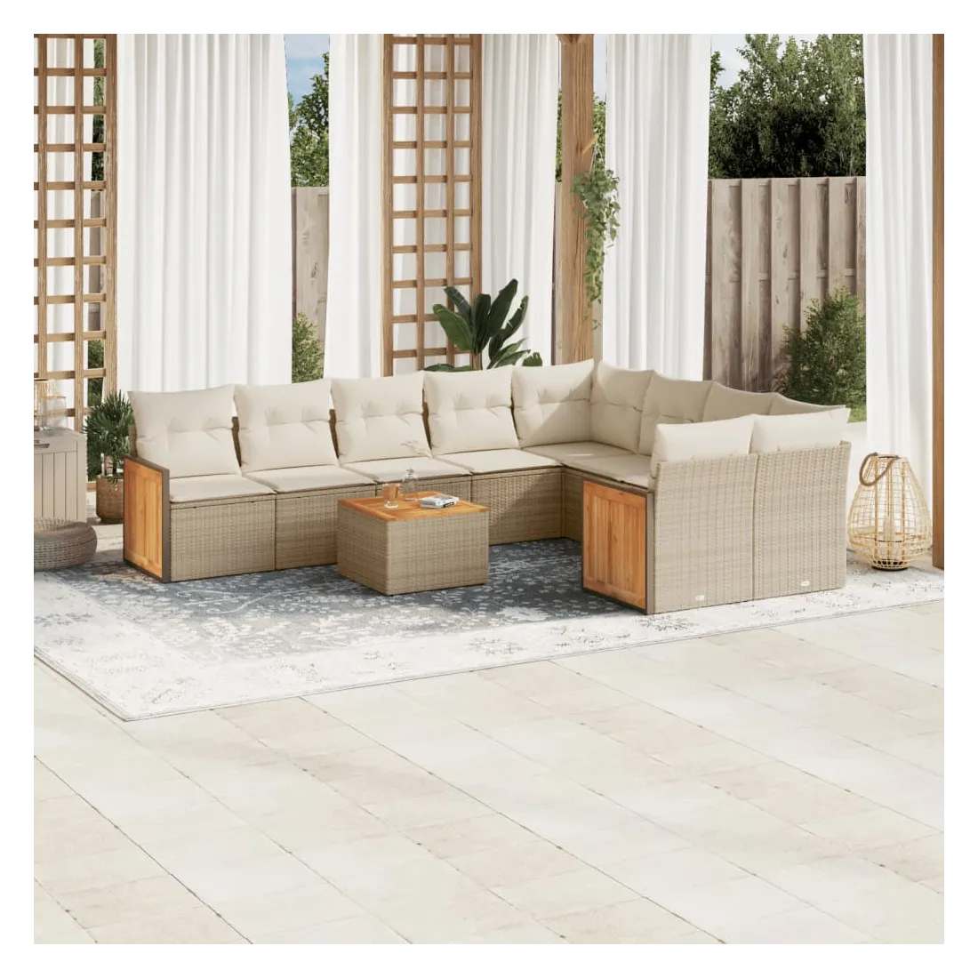 Salon de jardin avec coussins 10 pcs beige résine tressée