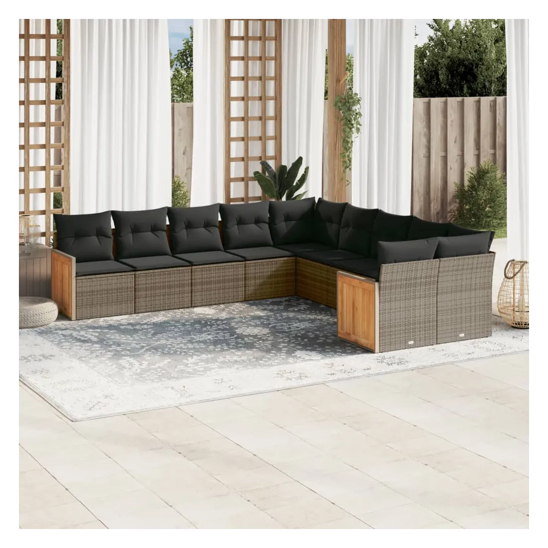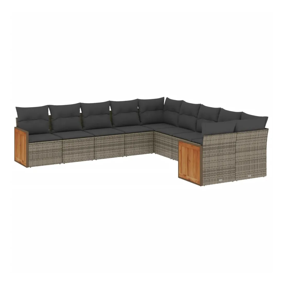 Salon de jardin avec coussins 10 pcs gris résine tressée