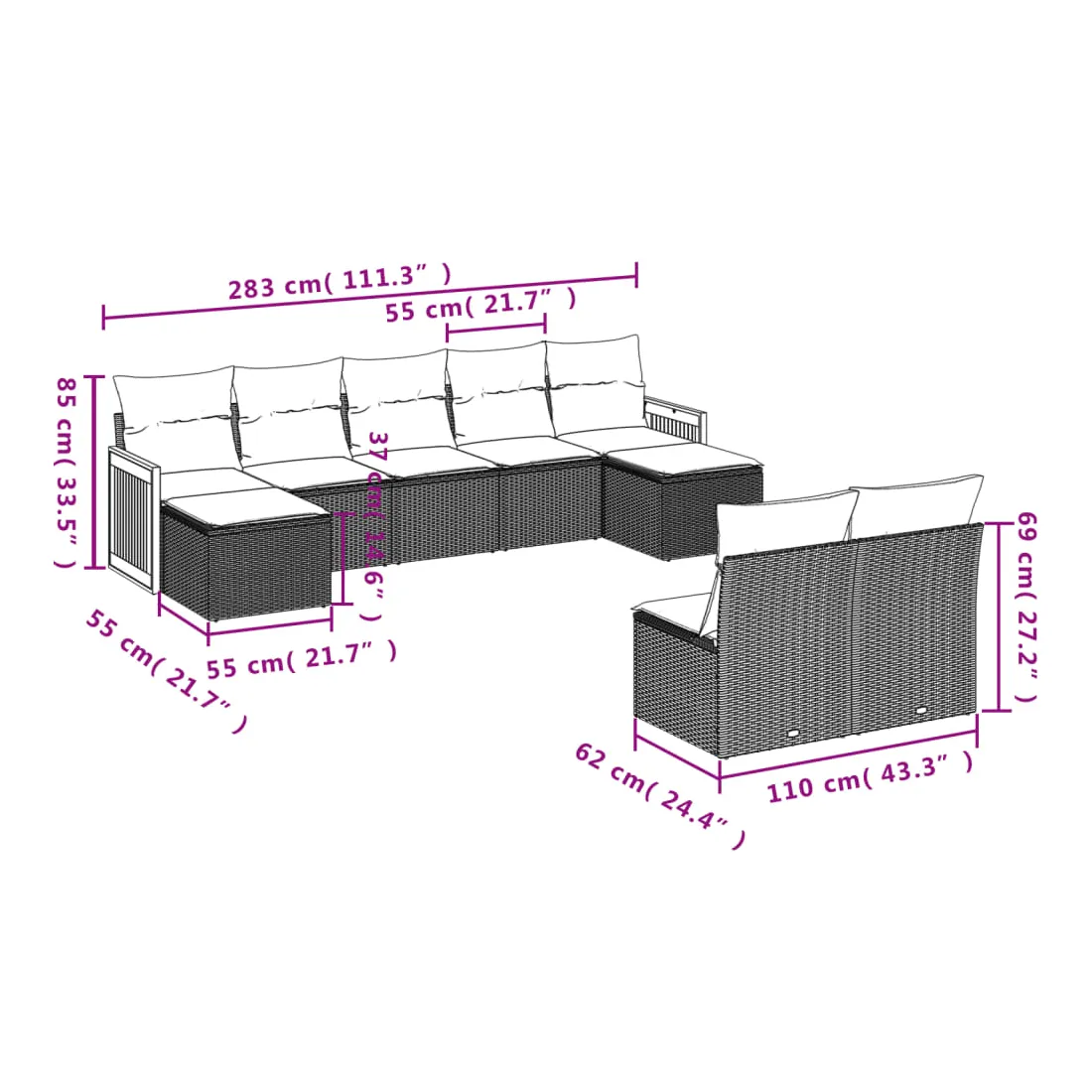 - 9 x coussin d'assise avec housse amovible et lavable