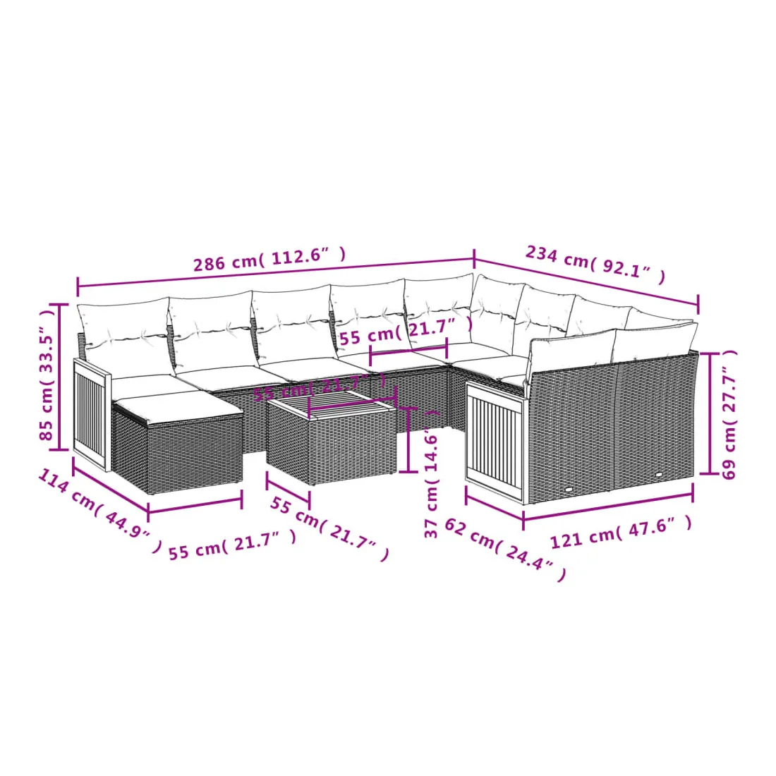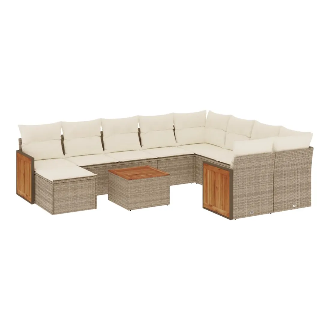 Cet ensemble de canapés de jardin est le complément parfait de votre arrière-cour, terrasse ou patio, offrant un espace confortable et accueillant pour discuter avec la famille et les amis ou simplement se détendre et profiter de l'extérieur. Matériau durable : la résine tressée, également connue sous le nom de poly rotin, est un matériau synthétique solide et nécessitant peu d'entretien qui ressemble au rotin naturel. Il est léger, facile à nettoyer et couramment utilisé pour les meubles d'extérieur en raison de sa durabilité et de ses propriétés de résistance aux intempéries.Fonction de rangement avec sac résistant à l'eau : le mobilier de jardin dispose d'un espace de rangement sous l'assise, complété par un sac résistant à l'eau pour ranger coussins, jouets et autres objets. Le sac intérieur peut être solidement fixé au mobilier d'extérieur grâce à des attaches auto-agrippantes pour plus de stabilité.Dessus stable et facile à nettoyer : cette table de jardin a un dessus en bois d'acacia robuste, durable et facile à nettoyer avec un chiffon humide.Housse amovible et lavable : ces coussins de siège sont dotés de housses amovibles pour un lavage et un entretien faciles.Conception modulaire : cet ensemble de meubles d'extérieur a une conception modulaire, ce qui le rend complètement flexible et facile à déplacer, afin que vous puissiez créer un agencement de meubles d'extérieur personnalisé. Bon à savoir :Pour que vos meubles d'extérieur restent beaux, nous vous recommandons de les protéger avec une housse imperméable.