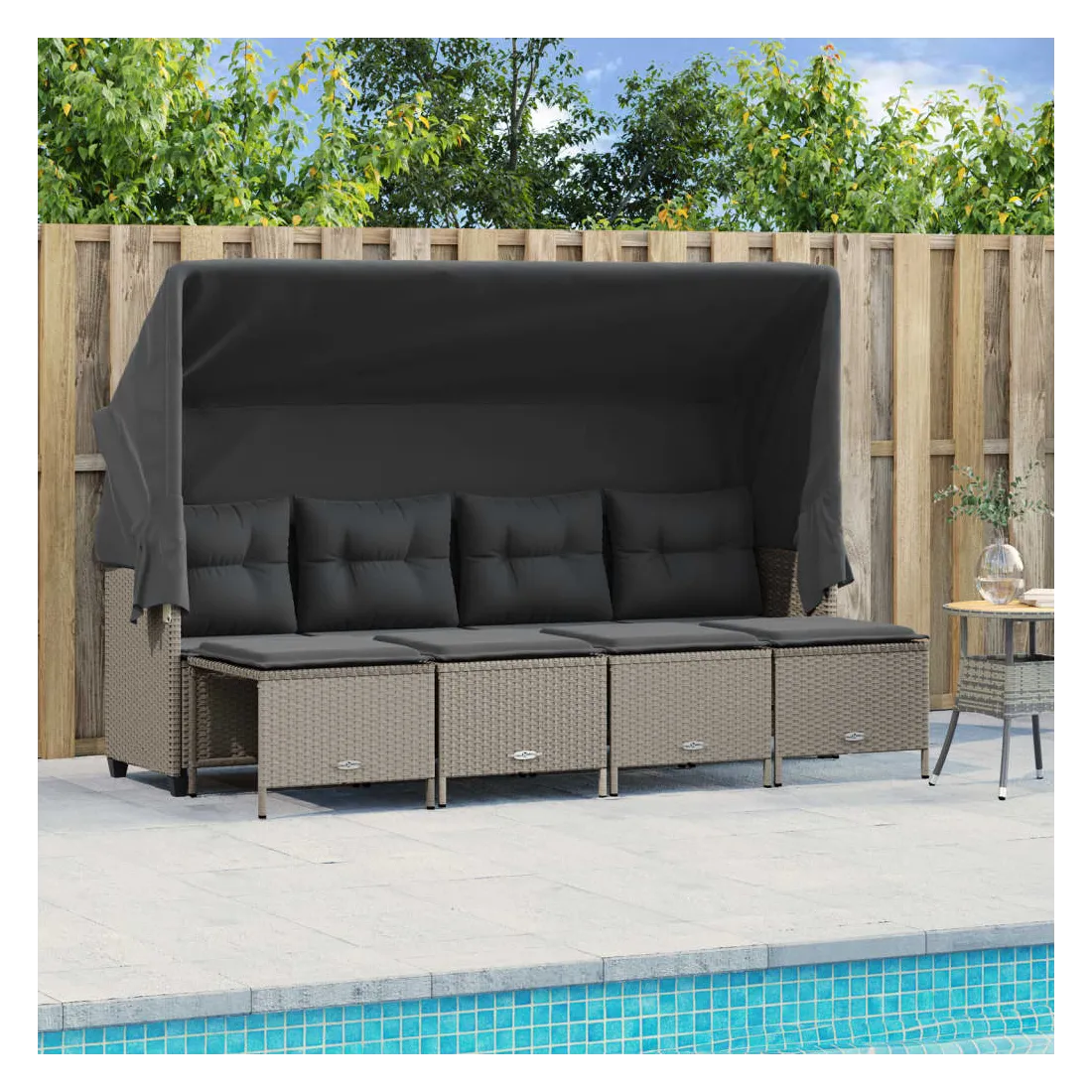 vidaXLCet ensemble de canapés de jardin est le complément parfait de votre arrière-cour, terrasse ou patio, offrant un espace confortable et accueillant pour discuter avec la famille et les amis ou simplement se détendre et profiter de l'extérieur. Matériau durable : la résine tressée, également connue sous le nom de poly rotin, est un matériau synthétique solide et nécessitant peu d'entretien qui ressemble au rotin naturel. Il est léger, facile à nettoyer et couramment utilisé pour les meubles d'extérieur en raison de sa durabilité et de ses propriétés de résistance aux intempéries.Auvent rétractable : grâce à l'auvent rétractable, vous pouvez créer un environnement extérieur frais et agréable tout au long de la journée.Expérience d'assise confortable : ce mobilier d'extérieur, doté de coussins épais, offre une expérience d'assise confortable.Pouf polyvalent : le tabouret est polyvalent, servant de repose-pieds confortable lorsque vous vous prélassez sur le canapé ou de siège supplémentaire dans votre jardin.Housse amovible et lavable : ces coussins de siège sont dotés de housses amovibles pour un lavage et un entretien faciles. Bon à savoir :Pour que vos meubles d'extérieur restent beaux, nous vous recommandons de les protéger avec une housse imperméable.
