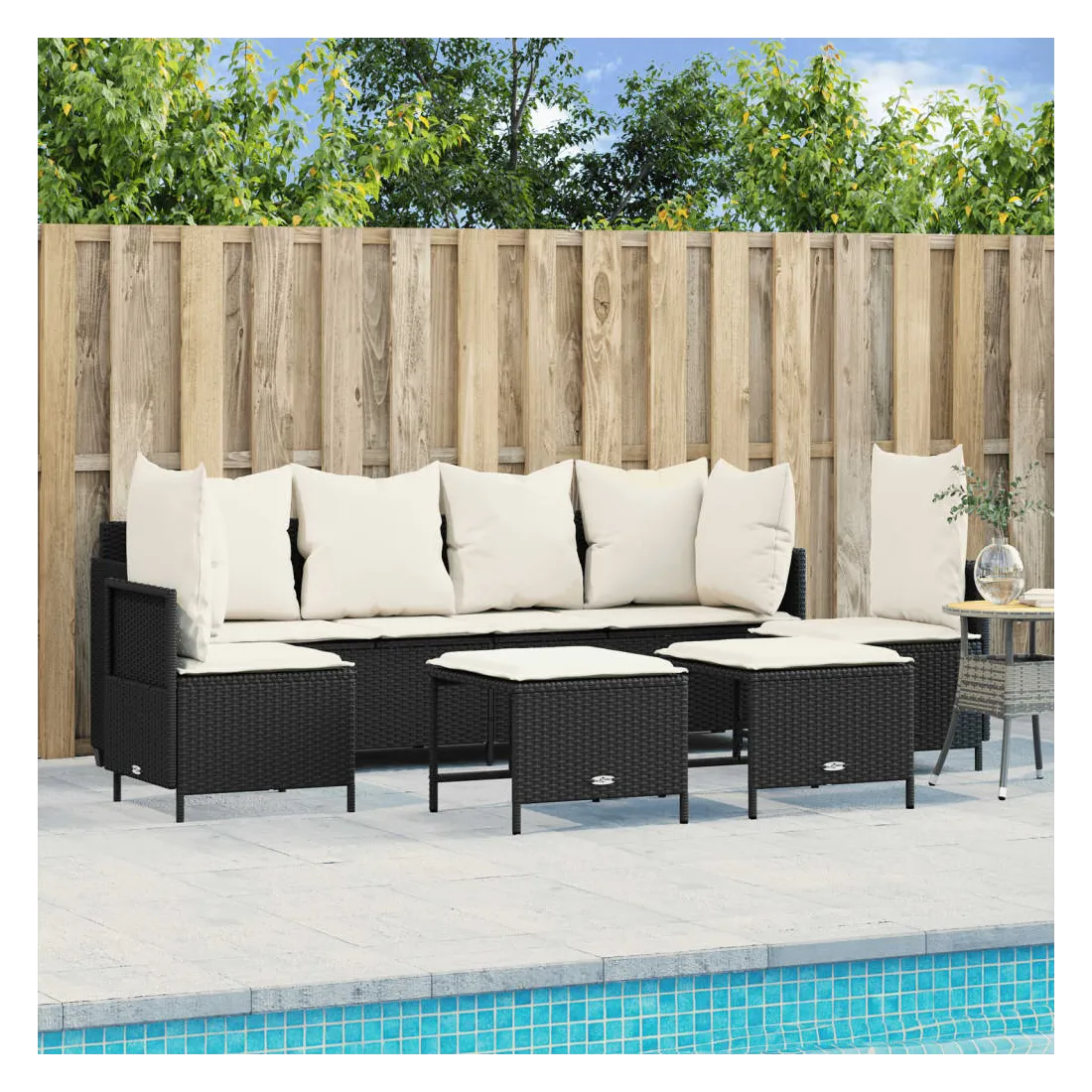 Cet ensemble de canapés de jardin est le complément parfait de votre arrière-cour, terrasse ou patio, offrant un espace confortable et accueillant pour discuter avec la famille et les amis ou simplement se détendre et profiter de l'extérieur. Matériau durable : la résine tressée, également connue sous le nom de poly rotin, est un matériau synthétique solide et nécessitant peu d'entretien qui ressemble au rotin naturel. Il est léger, facile à nettoyer et couramment utilisé pour les meubles d'extérieur en raison de sa durabilité et de ses propriétés de résistance aux intempéries.Dossier et repose-pied réglables : ce meuble d'extérieur est doté d'un dossier à 3 positions réglables et d'un repose-pieds à 2 positions réglables, ce qui vous permet de trouver facilement la position la plus confortable et la plus appropriée pour la détente.Expérience d'assise confortable : ce mobilier d'extérieur, doté de coussins épais, offre une expérience d'assise confortable.Pouf polyvalent : le tabouret est polyvalent, servant de repose-pieds confortable lorsque vous vous prélassez sur le canapé ou de siège supplémentaire dans votre jardin.Housse amovible et lavable : ces coussins de siège sont dotés de housses amovibles pour un lavage et un entretien faciles. Bon à savoir :Pour que vos meubles d'extérieur restent beaux, nous vous recommandons de les protéger avec une housse imperméable.