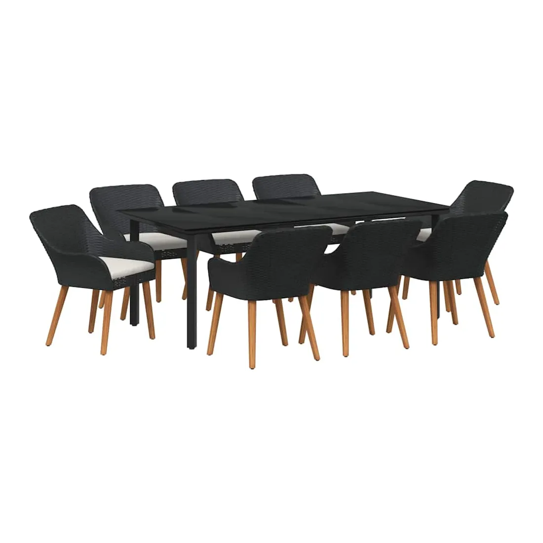 Ce superbe set de salle à manger de jardin change n'importe quel espace extérieur en un coin moderne. Fait pour ceux qui aiment les lignes claires et le style contemporain, il combine sophistication et utilité. Son cadre élégant attire le regard, que ce soit pour un brunch en toute intimité ou un dîner animé. La simplicité du set, combinée à un mix de matériaux trendy, lui permet de s'intégrer facilement dans des jardins modernes ou des terrasses stylées. Profitez de moments fun tout en vous relaxant dans le confort et la beauté. Poly Rattan Haute Densité : Ce set est fait en poly rattan connu pour sa durabilité et sa résistance aux UV. Ce matériau endure les intempéries tout en offrant un confort d'assise et en gardant un look élégant pour n'importe quel jardin ou terrasse. Arrangement Complet de Sièges : Notre set inclut des chaises stylées et une table de patio avec un plateau en verre trempé. Chaque chaise est équipée de coussins résistants aux intempéries pour plus de confort et de style, et la table en verre trempé apporte une touche d'élégance et se nettoie facilement. Construction Supérieure : Les pieds en acier recouvert de poudre garantissent la stabilité et supportent jusqu'à 110 kg par chaise. Une structure solide pour que votre mobilier de jardin reste en bon état dans le temps. Style Moderne : Avec un design minimaliste, le style moderne de ce set s'adapte facilement à des ambiances contemporaines. Chic, sophistiqué et bien conçu, il est parfait pour ceux qui cherchent à marier forme et fonction dans leur espace extérieur. Entretien Simple : Pas de tracas pour l'entretien de ce set ; un coup de chiffon humide par ci par là et c'est bon. L'assemblage nécessite deux personnes et un tournevis, pour une installation simple.