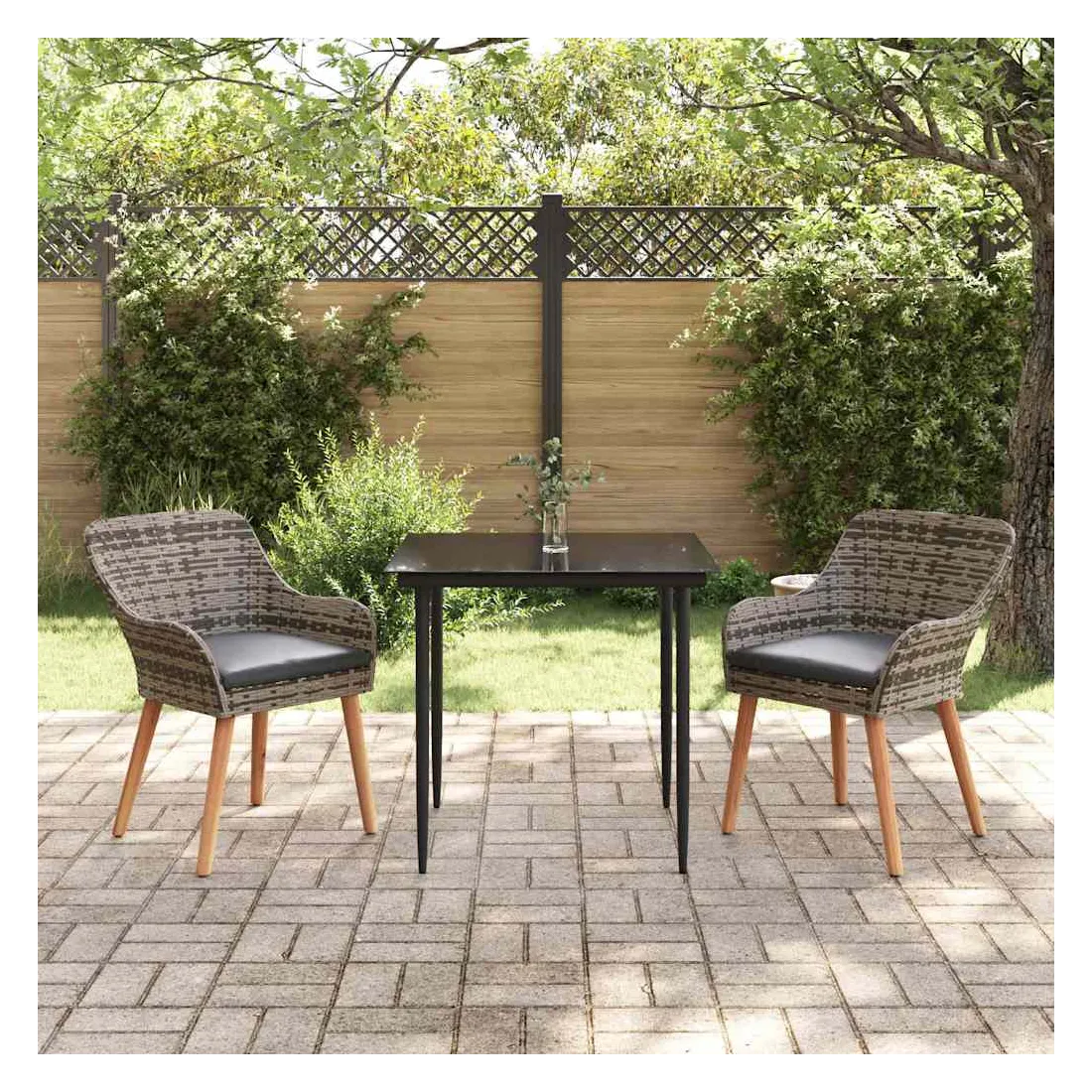 Le set de salle à manger de jardin est un super ajout à n'importe quel espace extérieur, avec un style moderne et des lignes épurées qui attirent l'œil. Réalisé pour ceux qui veulent le meilleur, cet ensemble allie perfection et style, idéal pour passer de bons moments dans votre jardin ou sur votre terrasse. Son look chic transforme votre extérieur en un endroit cool pour dîner et se relaxer. Matériau en poly rattan : Le set de salle à manger pour le jardin est fait en poly rattan, connu pour sa durabilité et son faible entretien. Ce matériau résiste aux intempéries, ce qui garantit que votre ensemble reste beau même après une utilisation extérieure. La texture du rattan apporte une touche classe à tout ensemble de jardin. Surface en verre trempé : La table est recouverte de verre trempé, ce qui offre une expérience de repas lisse. Le verre est facile à nettoyer, reste clair malgré le temps qu'il fait et ajoute une finition moderne qui complète bien le rattan. Confort total : Cet ensemble vient avec des coussins rembourrés conçus pour l'extérieur et résistants au mauvais temps, garantissant du confort même par temps difficile. Pensés pour le bien-être, les coussins s'adaptent bien aux chaises et visent à maximiser votre confort. Composants pratiques : La finition du dossier en poly rattan, avec des accoudoirs stables, crée une ambiance accueillante et ergonomique. Chaque élément a été soigneusement intégré pour rendre vos repas inoubliables. Entretien et maintenance : Conçu pour un entretien facile, il suffit de passer un coup de chiffon humide pour garder l'ensemble en top état. On vous conseille d'utiliser une housse étanche pour prolonger sa durabilité et garder son look au fil du temps.