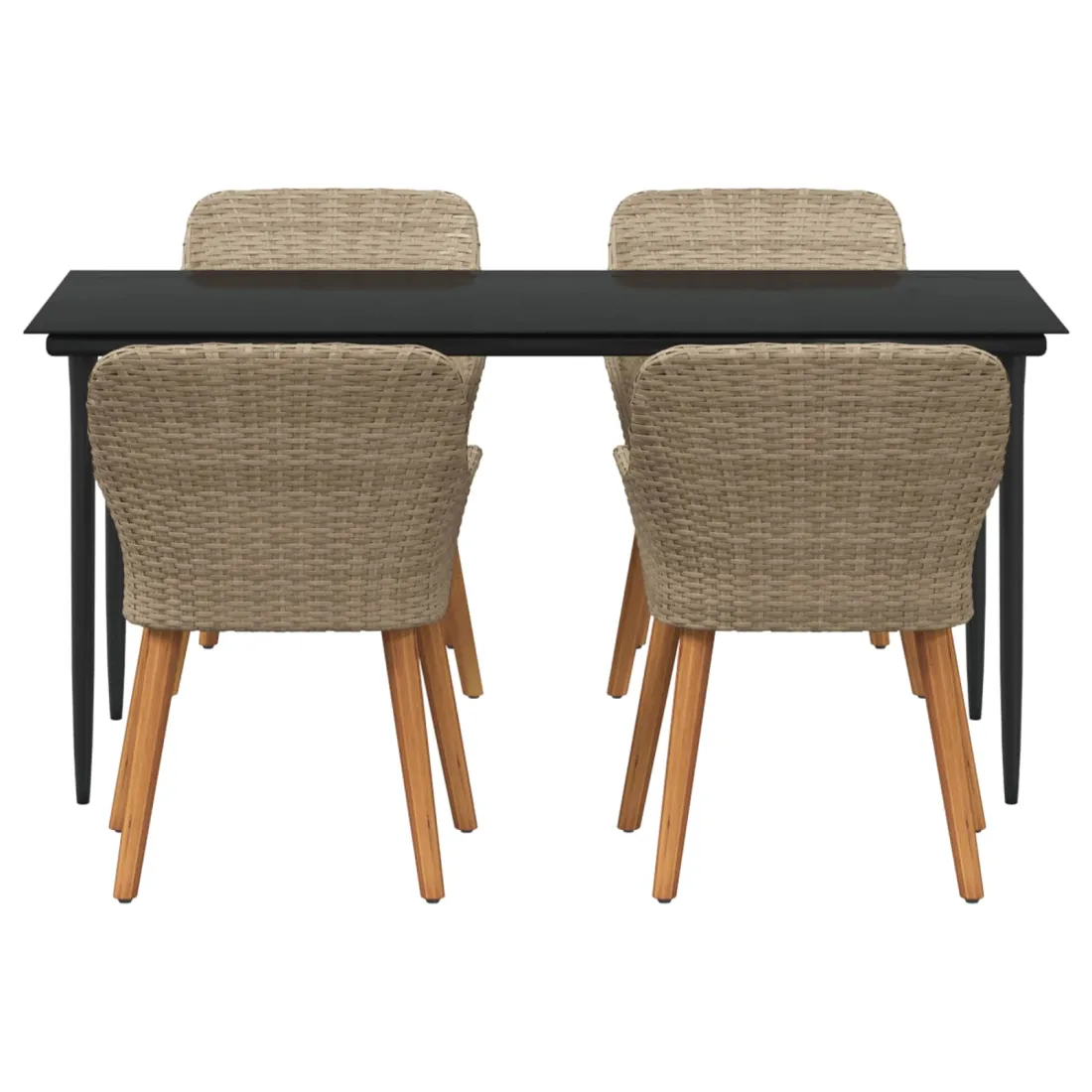 Le set de salle à manger de jardin est un super ajout à n'importe quel espace extérieur, avec un style moderne et des lignes épurées qui attirent l'œil. Réalisé pour ceux qui veulent le meilleur, cet ensemble allie perfection et style, idéal pour passer de bons moments dans votre jardin ou sur votre terrasse. Son look chic transforme votre extérieur en un endroit cool pour dîner et se relaxer. Matériau en poly rattan : Le set de salle à manger pour le jardin est fait en poly rattan, connu pour sa durabilité et son faible entretien. Ce matériau résiste aux intempéries, ce qui garantit que votre ensemble reste beau même après une utilisation extérieure. La texture du rattan apporte une touche classe à tout ensemble de jardin. Surface en verre trempé : La table est recouverte de verre trempé, ce qui offre une expérience de repas lisse. Le verre est facile à nettoyer, reste clair malgré le temps qu'il fait et ajoute une finition moderne qui complète bien le rattan. Confort total : Cet ensemble vient avec des coussins rembourrés conçus pour l'extérieur et résistants au mauvais temps, garantissant du confort même par temps difficile. Pensés pour le bien-être, les coussins s'adaptent bien aux chaises et visent à maximiser votre confort. Composants pratiques : La finition du dossier en poly rattan, avec des accoudoirs stables, crée une ambiance accueillante et ergonomique. Chaque élément a été soigneusement intégré pour rendre vos repas inoubliables. Entretien et maintenance : Conçu pour un entretien facile, il suffit de passer un coup de chiffon humide pour garder l'ensemble en top état. On vous conseille d'utiliser une housse étanche pour prolonger sa durabilité et garder son look au fil du temps.