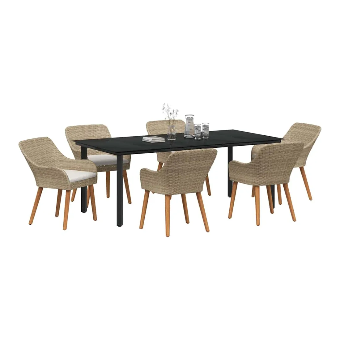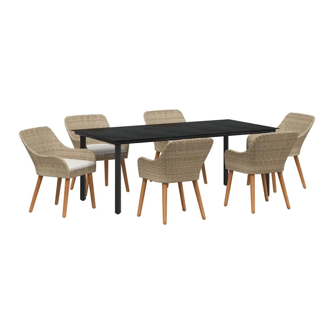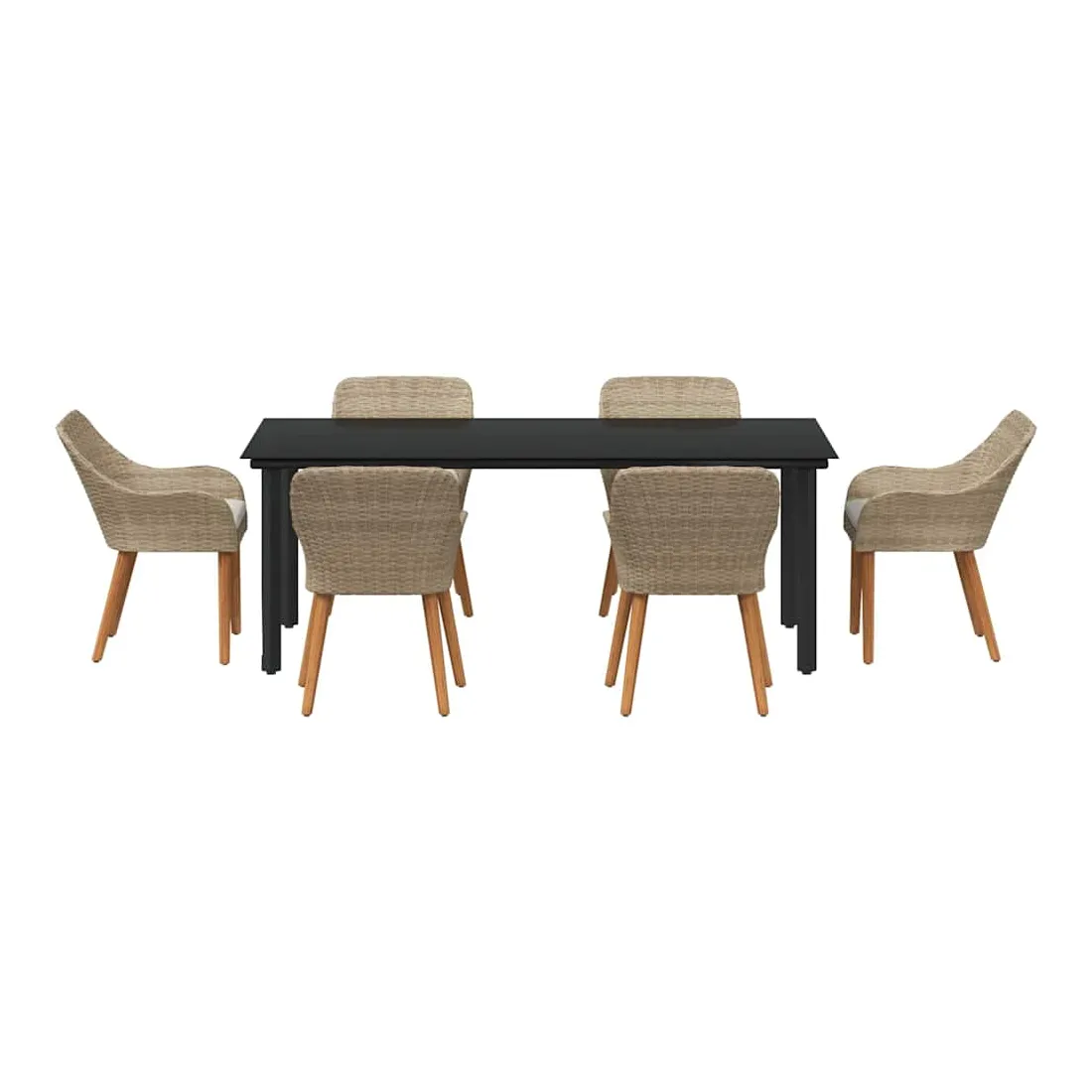Ce superbe set de salle à manger de jardin change n'importe quel espace extérieur en un coin moderne. Fait pour ceux qui aiment les lignes claires et le style contemporain, il combine sophistication et utilité. Son cadre élégant attire le regard, que ce soit pour un brunch en toute intimité ou un dîner animé. La simplicité du set, combinée à un mix de matériaux trendy, lui permet de s'intégrer facilement dans des jardins modernes ou des terrasses stylées. Profitez de moments fun tout en vous relaxant dans le confort et la beauté. Poly Rattan Haute Densité : Ce set est fait en poly rattan connu pour sa durabilité et sa résistance aux UV. Ce matériau endure les intempéries tout en offrant un confort d'assise et en gardant un look élégant pour n'importe quel jardin ou terrasse. Arrangement Complet de Sièges : Notre set inclut des chaises stylées et une table de patio avec un plateau en verre trempé. Chaque chaise est équipée de coussins résistants aux intempéries pour plus de confort et de style, et la table en verre trempé apporte une touche d'élégance et se nettoie facilement. Construction Supérieure : Les pieds en acier recouvert de poudre garantissent la stabilité et supportent jusqu'à 110 kg par chaise. Une structure solide pour que votre mobilier de jardin reste en bon état dans le temps. Style Moderne : Avec un design minimaliste, le style moderne de ce set s'adapte facilement à des ambiances contemporaines. Chic, sophistiqué et bien conçu, il est parfait pour ceux qui cherchent à marier forme et fonction dans leur espace extérieur. Entretien Simple : Pas de tracas pour l'entretien de ce set ; un coup de chiffon humide par ci par là et c'est bon. L'assemblage nécessite deux personnes et un tournevis, pour une installation simple.