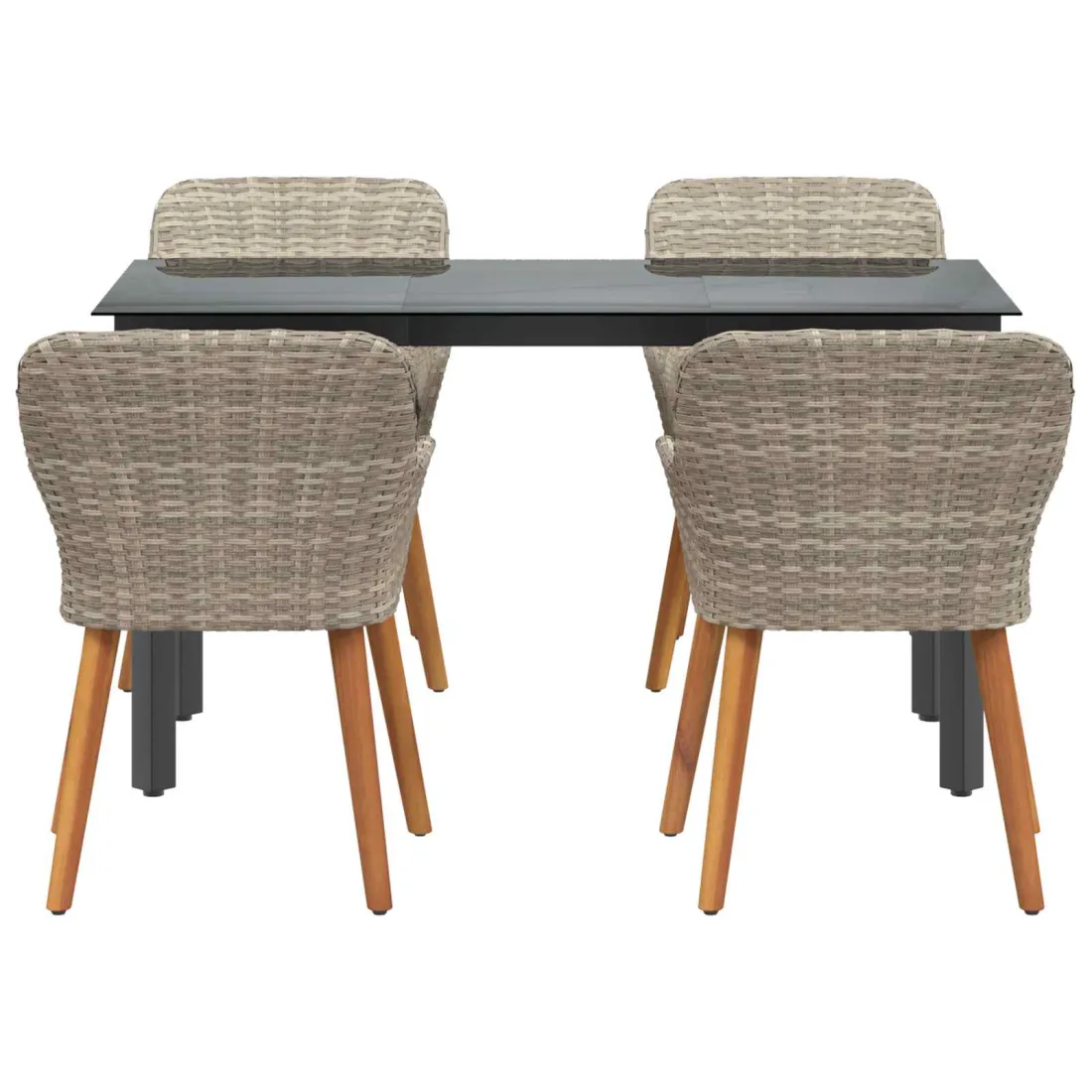 Cet ensemble de jardin moderne propose une solution à la fois actuelle et durable pour manger en extérieur, que ce soit dans le jardin ou sur la terrasse. Ses lignes épurées évoquent un design contemporain avec une large table et des chaises confortables, créant une ambiance conviviale pour vos repas en plein air. Sa finition en poly rattan gris clair s'harmonise parfaitement avec votre espace extérieur, alliant esthétique et fonctionnalité. Matériau qui tient dehors : Fabriqué avec un poly rattan résistant, cet ensemble est fait pour braver la météo, parfait pour le dehors toute l'année. Il résiste aux UV et à l'humidité, garantissant durabilité et entretien facile. Cadre en acier robuste : Fiable et solide, le cadre en acier revêtu de poudre donne une base stable, assurant sécurité durant les repas. Avec une qualité à l'esprit, il résiste bien et prolonge la vie de votre investissement. Coussins confortables : Ces coussins d'extérieur promise du confort sans compromettre leur résistance à la pluie et au soleil. Conçus pour des moments de détente, ils invitent vos invités à s'asseoir, discuter et manger tranquillement. Style moderne : Avec son look en poly rattan gris clair, cet ensemble s'intègre facilement dans tous les styles de décoration extérieure. Son design minimaliste rehausse l'ambiance sans trop charger l'espace, offrant une belle harmonie. Entretien facile : L'entretien est simple avec peu de besoin. Essuyez simplement les surfaces avec un chiffon sec pour que l'ensemble reste lumineux. Des housses de protection peuvent aussi être utilisées pour plus de soin lors de mauvais temps.
