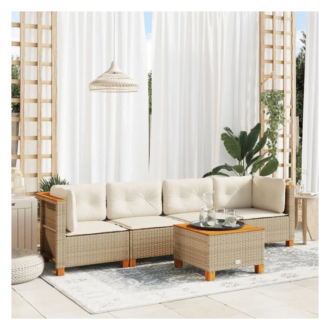 Cet ensemble de canapés de jardin est le complément parfait de votre arrière-cour, terrasse ou patio, offrant un espace confortable et accueillant pour discuter avec la famille et les amis ou simplement se détendre et profiter de l'extérieur. Matériau durable : la résine tressée, également connue sous le nom de poly rotin, est un matériau synthétique solide et nécessitant peu d'entretien qui ressemble au rotin naturel. Elle est légère, facile à nettoyer et couramment utilisée pour les meubles d'extérieur en raison de sa durabilité et de ses propriétés de résistance aux intempéries.Expérience d'assise confortable : ce mobilier d'extérieur, doté de coussins épais, offre une expérience d'assise confortable.Housse amovible et lavable : ces coussins de siège sont dotés de housses amovibles pour un lavage et un entretien faciles.Dessus stable et facile à nettoyer : cette table de jardin a un dessus en bois d'acacia robuste, durable et facile à nettoyer avec un chiffon humide.Conception modulaire : cet ensemble de meubles d'extérieur a une conception modulaire, ce qui le rend complètement flexible et facile à déplacer, afin que vous puissiez créer un agencement de meubles d'extérieur personnalisé. Bon à savoir :Pour que vos meubles d'extérieur restent beaux, nous vous recommandons de les protéger avec une housse imperméable.