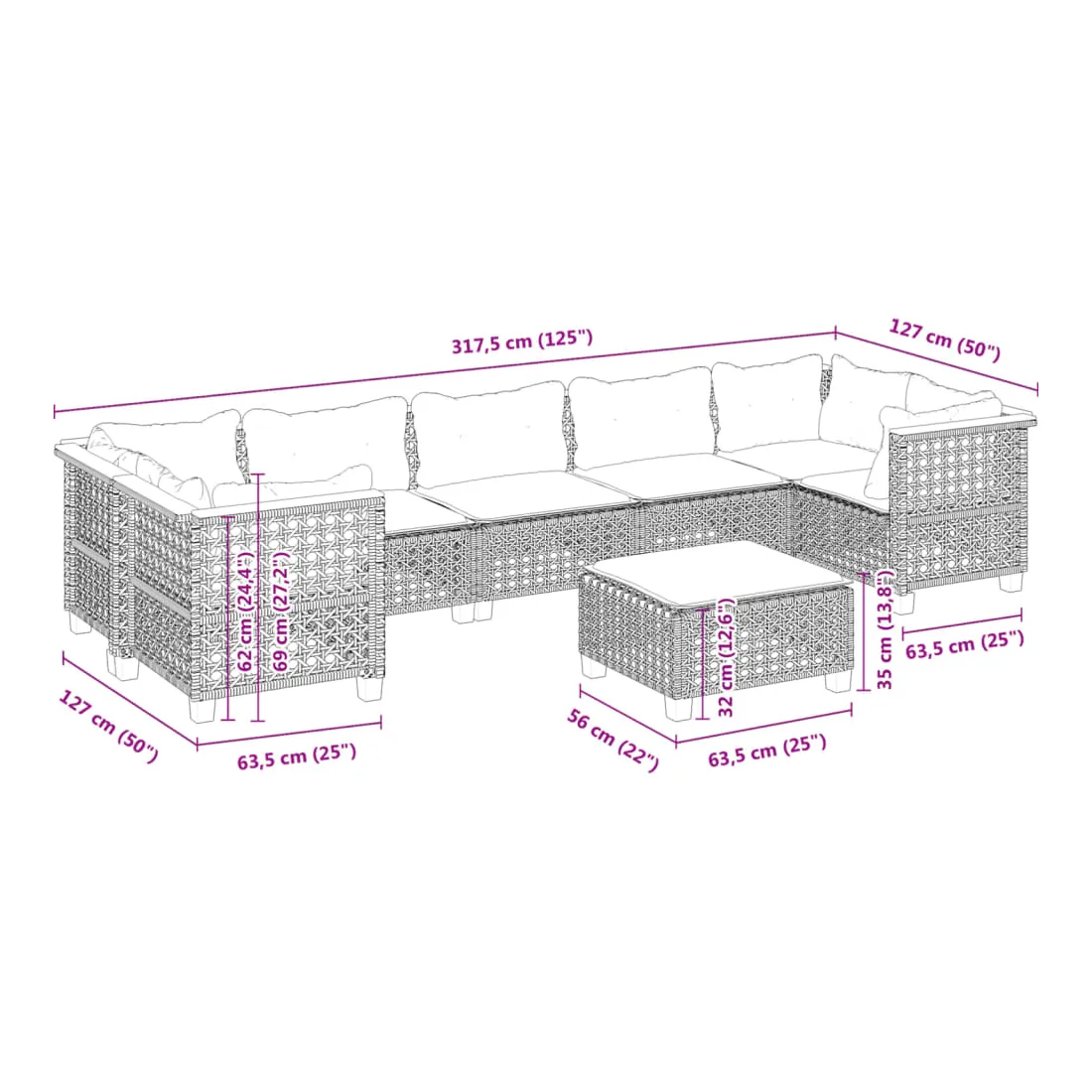 Cet ensemble de canapés de jardin est le complément parfait de votre arrière-cour, terrasse ou patio, offrant un espace confortable et accueillant pour discuter avec la famille et les amis ou simplement se détendre et profiter de l'extérieur. Matériau durable : la résine tressée, également connue sous le nom de poly rotin, est un matériau synthétique solide et nécessitant peu d'entretien qui ressemble au rotin naturel. Il est léger, facile à nettoyer et couramment utilisé pour les meubles d'extérieur en raison de sa durabilité et de ses propriétés de résistance aux intempéries.Expérience d'assise confortable : ce mobilier d'extérieur, doté de coussins épais, offre une expérience d'assise confortable.Housse amovible et lavable : ces coussins de siège sont dotés de housses amovibles pour un lavage et un entretien faciles.Conception modulaire : cet ensemble de meubles d'extérieur a une conception modulaire, ce qui le rend complètement flexible et facile à déplacer, afin que vous puissiez créer un agencement de meubles d'extérieur personnalisé. Bon à savoir :Pour que vos meubles d'extérieur restent beaux, nous vous recommandons de les protéger avec une housse imperméable.