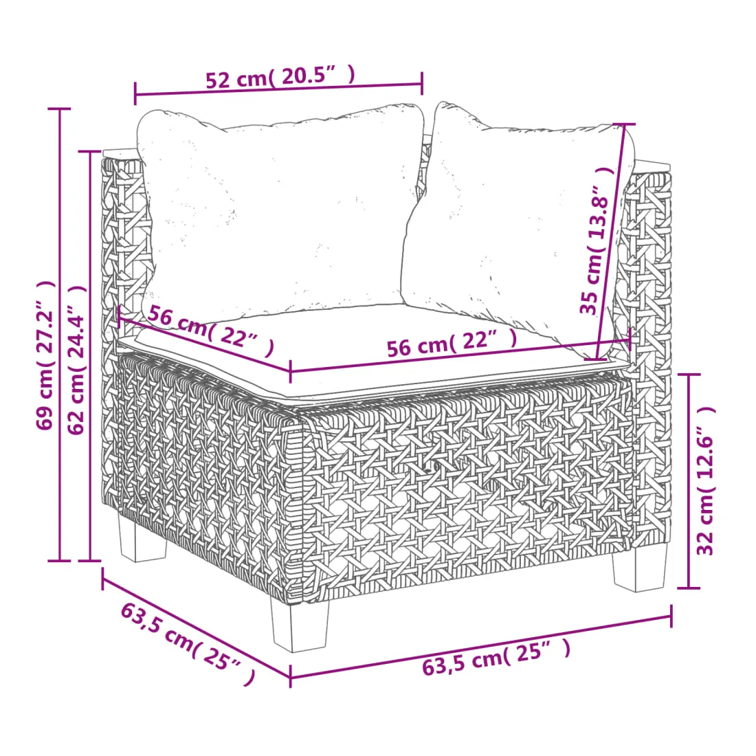 - Dimensions du coussin d’assise (angle) : 56,5 x 56,5 x 3 cm (l x P x é)