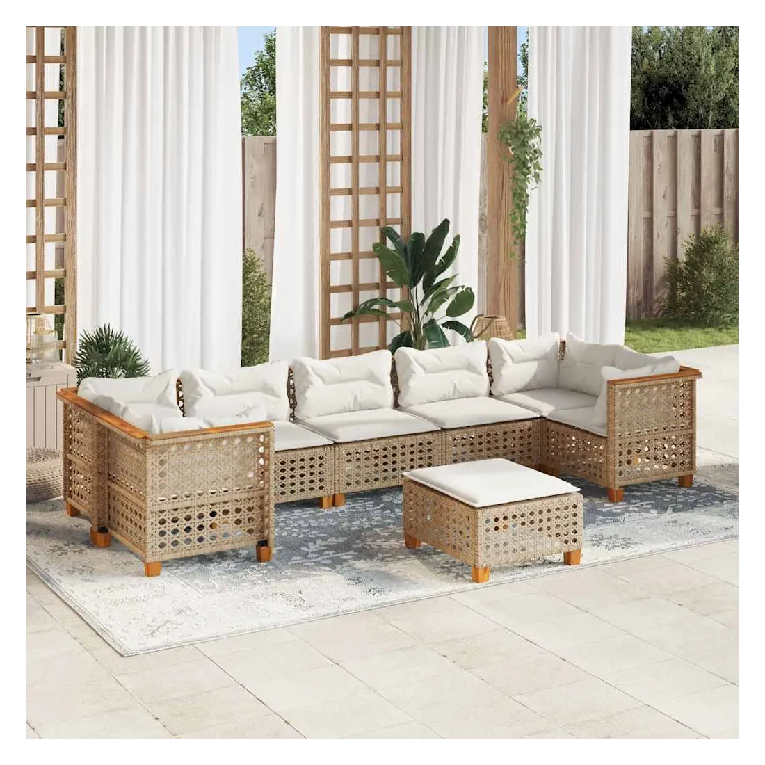 - Matériau : résine tressée, acier enduit de poudre, bois d'acacia massif avec finition à l'huile naturelle