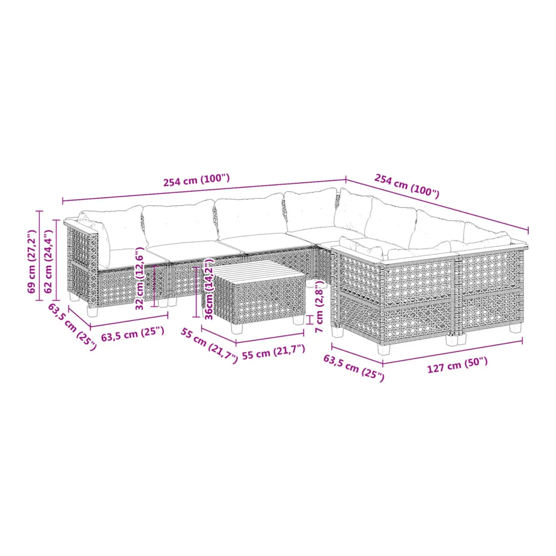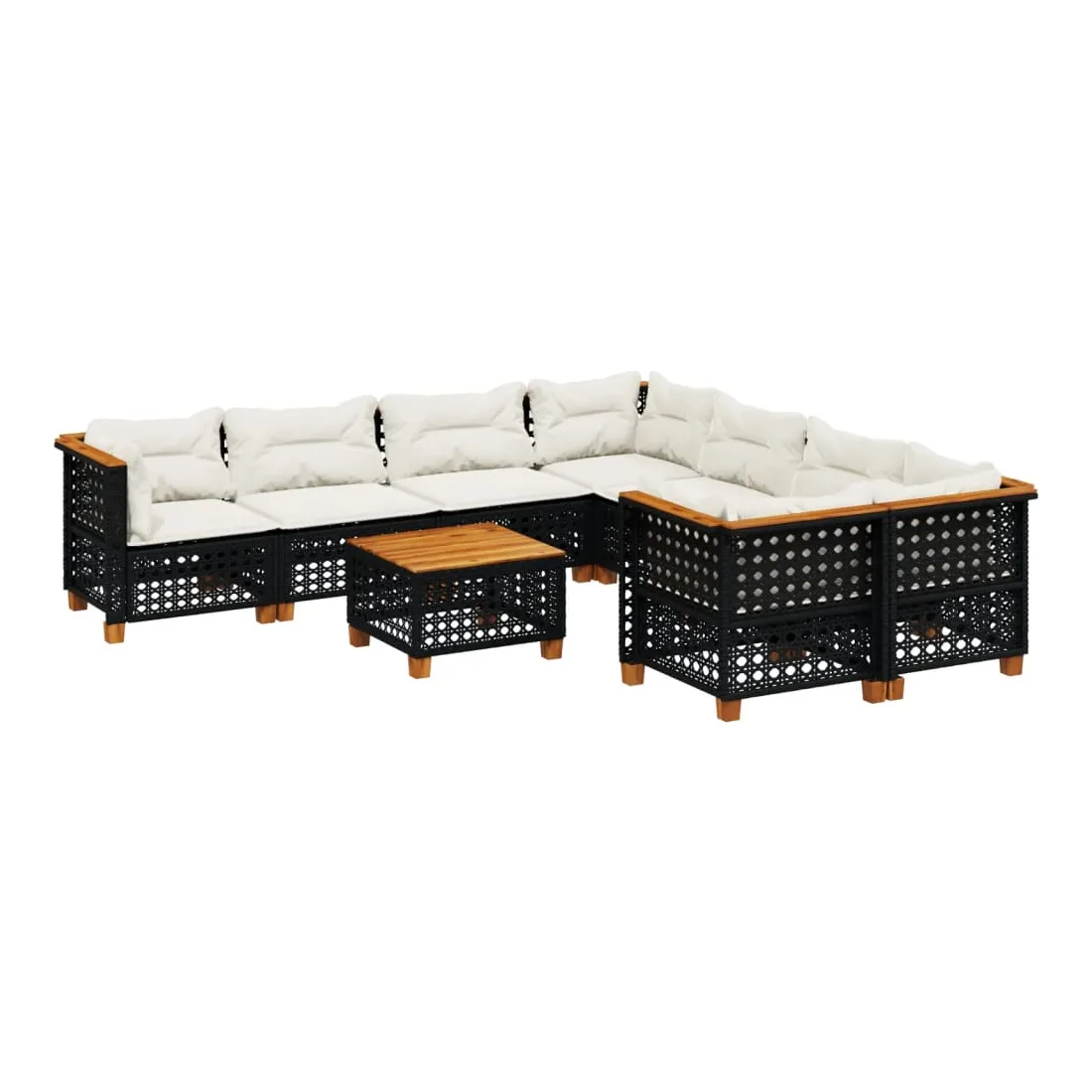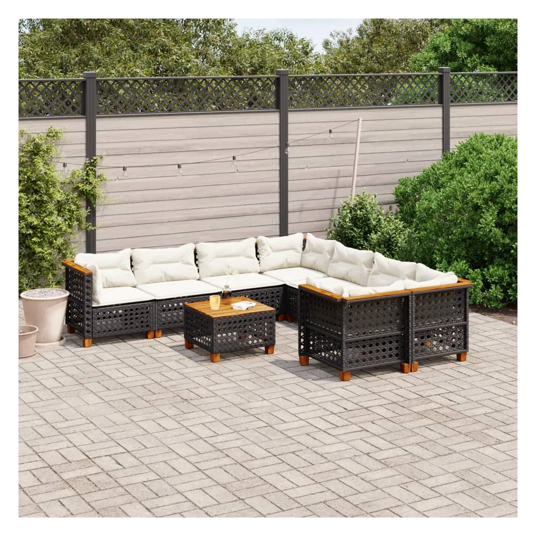 Salon de jardin 9 pcs avec coussins noir résine tressée