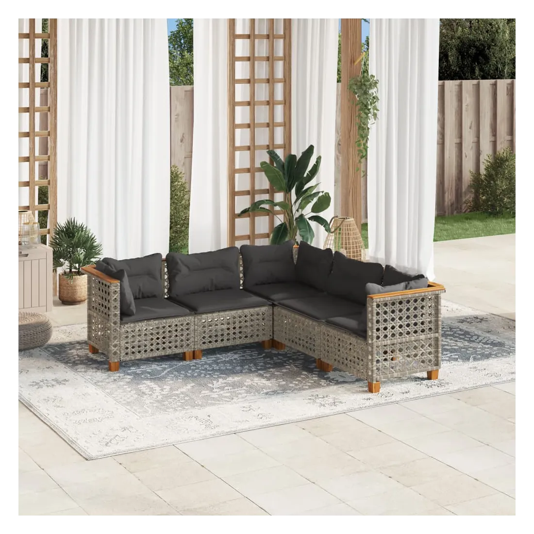 Cet ensemble de canapés de jardin est le complément parfait de votre arrière-cour, terrasse ou patio, offrant un espace confortable et accueillant pour discuter avec la famille et les amis ou simplement se détendre et profiter de l'extérieur. Matériau durable : la résine tressée, également connue sous le nom de poly rotin, est un matériau synthétique solide et nécessitant peu d'entretien qui ressemble au rotin naturel. Il est léger, facile à nettoyer et couramment utilisé pour les meubles d'extérieur en raison de sa durabilité et de ses propriétés de résistance aux intempéries.Expérience d'assise confortable : ce mobilier d'extérieur, doté de coussins épais, offre une expérience d'assise confortable.Housse amovible et lavable : ces coussins de siège sont dotés de housses amovibles pour un lavage et un entretien faciles.Conception modulaire : cet ensemble de meubles d'extérieur a une conception modulaire, ce qui le rend complètement flexible et facile à déplacer, afin que vous puissiez créer un agencement de meubles d'extérieur personnalisé. Bon à savoir :Pour que vos meubles d'extérieur restent beaux, nous vous recommandons de les protéger avec une housse imperméable.