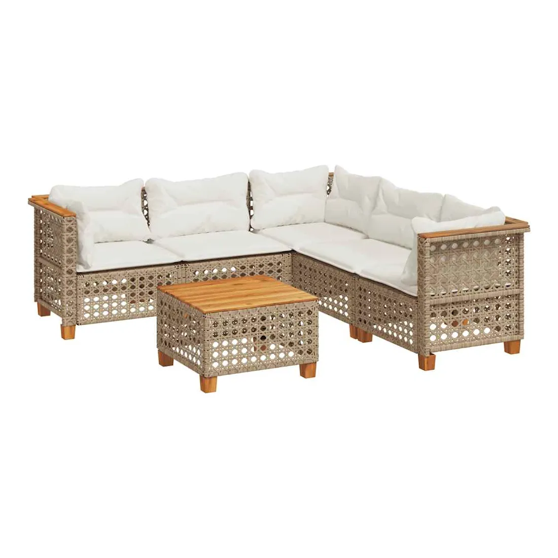 Salon de jardin avec coussins 6 pcs beige résine tressée