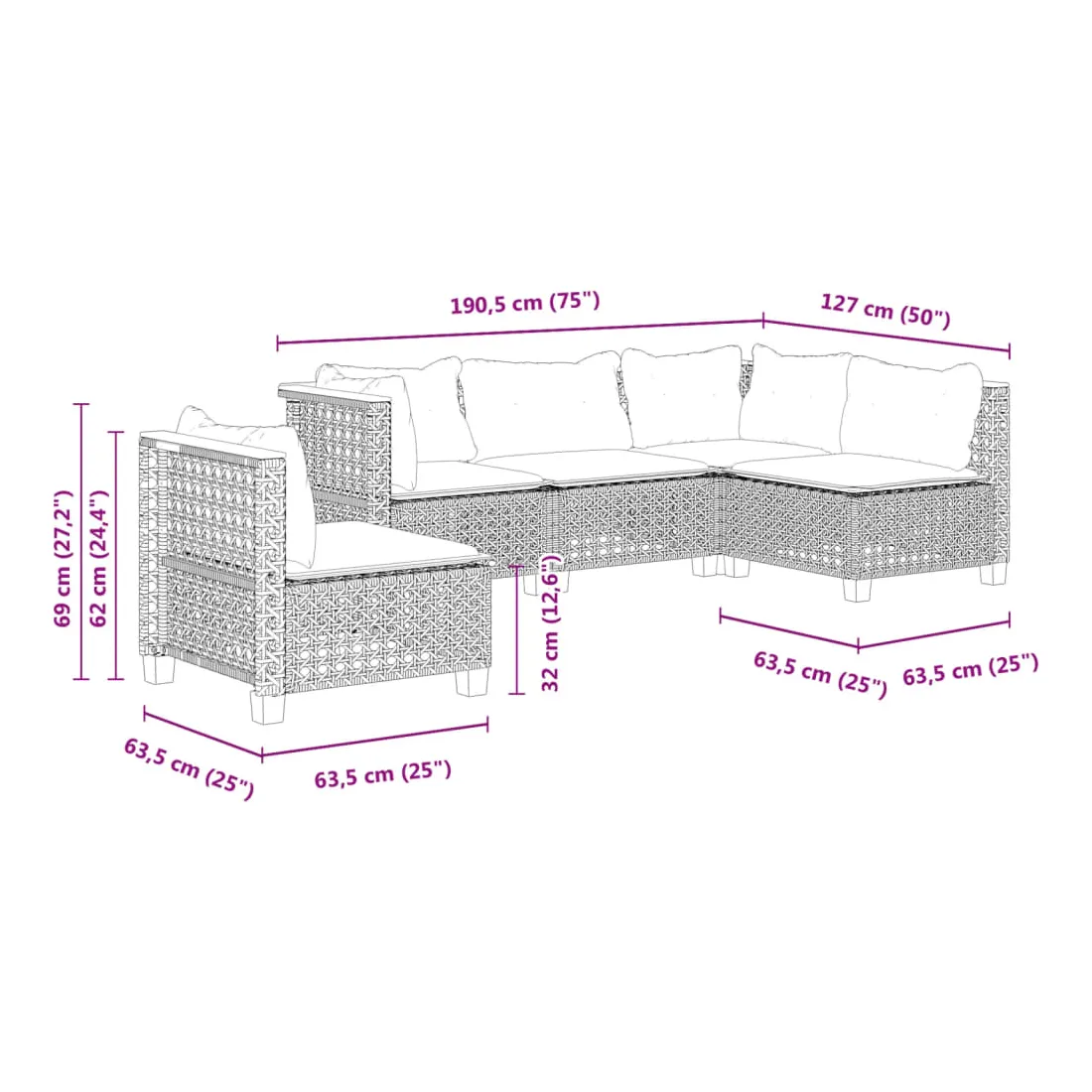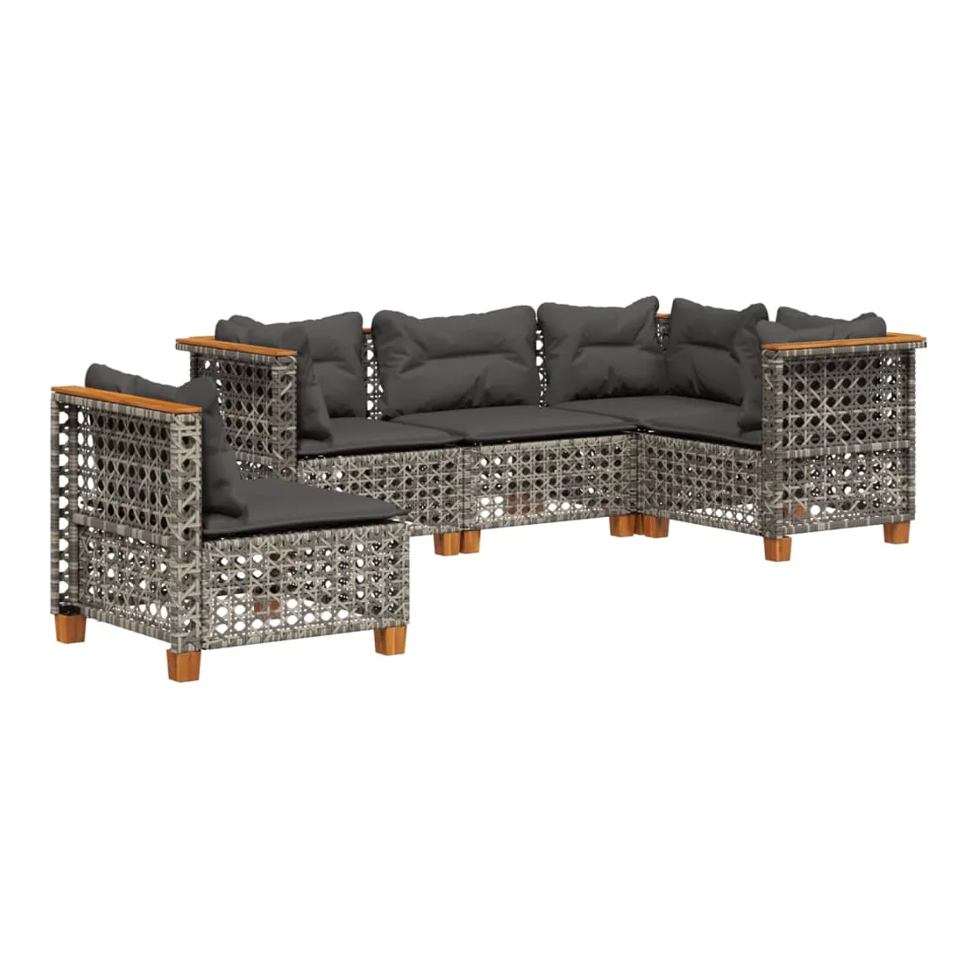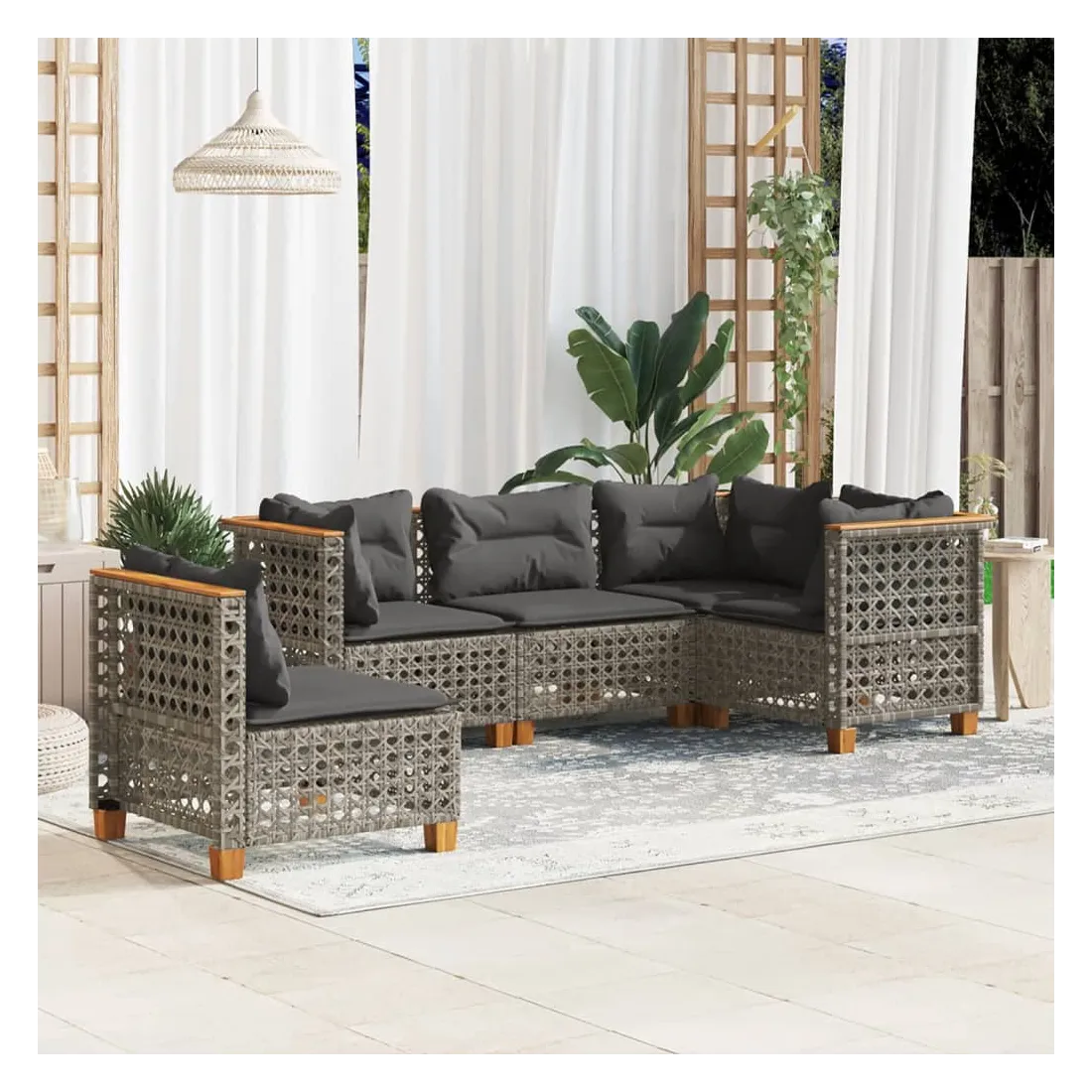 Salon de jardin 5 pcs avec coussins gris résine tressée