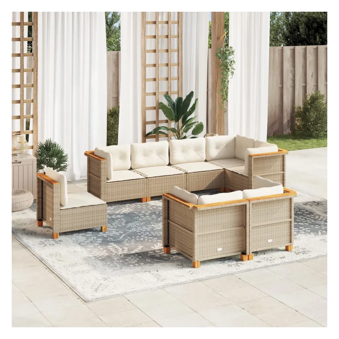 Cet ensemble de canapés de jardin est le complément parfait de votre arrière-cour, terrasse ou patio, offrant un espace confortable et accueillant pour discuter avec la famille et les amis ou simplement se détendre et profiter de l'extérieur. Matériau durable : la résine tressée, également connue sous le nom de poly rotin, est un matériau synthétique solide et nécessitant peu d'entretien qui ressemble au rotin naturel. Elle est légère, facile à nettoyer et couramment utilisée pour les meubles d'extérieur en raison de sa durabilité et de ses propriétés de résistance aux intempéries.Expérience d'assise confortable : ce mobilier d'extérieur, doté de coussins épais, offre une expérience d'assise confortable.Housse amovible et lavable : ces coussins de siège sont dotés de housses amovibles pour un lavage et un entretien faciles.Conception modulaire : cet ensemble de meubles d'extérieur a une conception modulaire, ce qui le rend complètement flexible et facile à déplacer, afin que vous puissiez créer un agencement de meubles d'extérieur personnalisé. Bon à savoir :Pour que vos meubles d'extérieur restent beaux, nous vous recommandons de les protéger avec une housse imperméable.